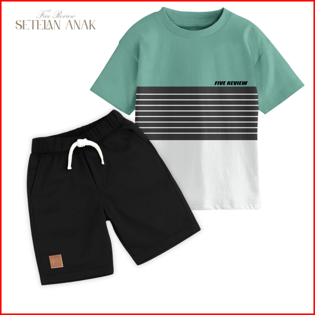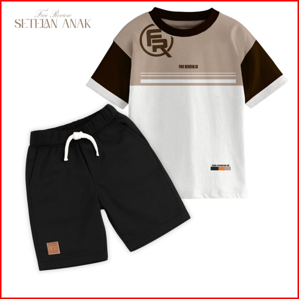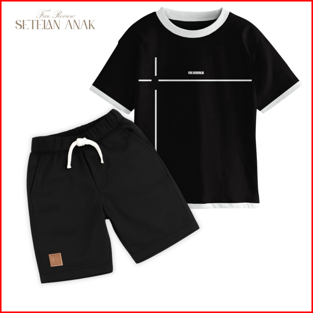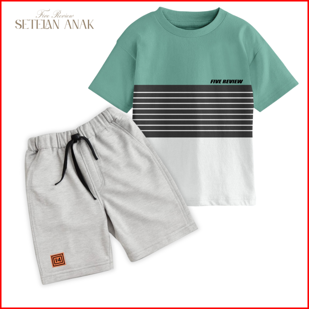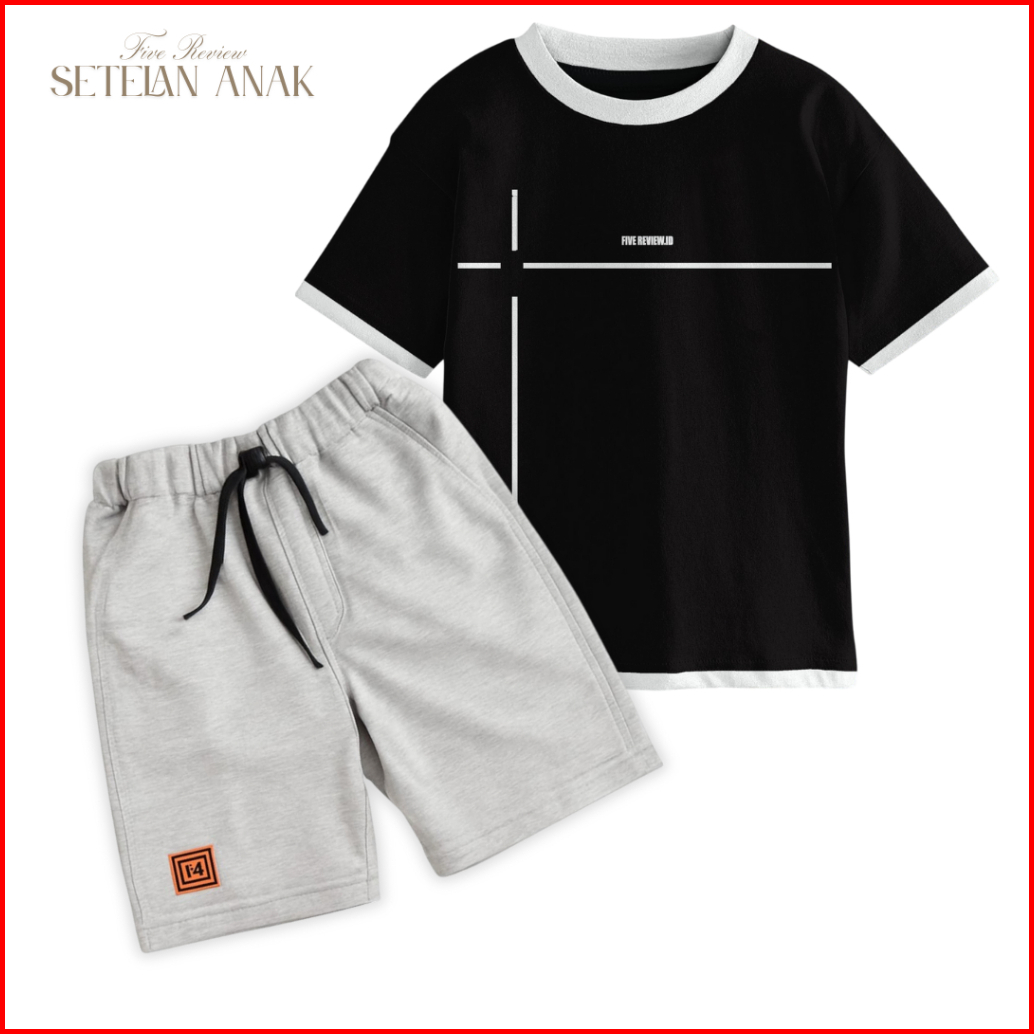 Setelan Kaos Kombinasi Anak Laki-laki Baju Pakaian Kaos Celana Pendek Fleece Usia 3-12thn