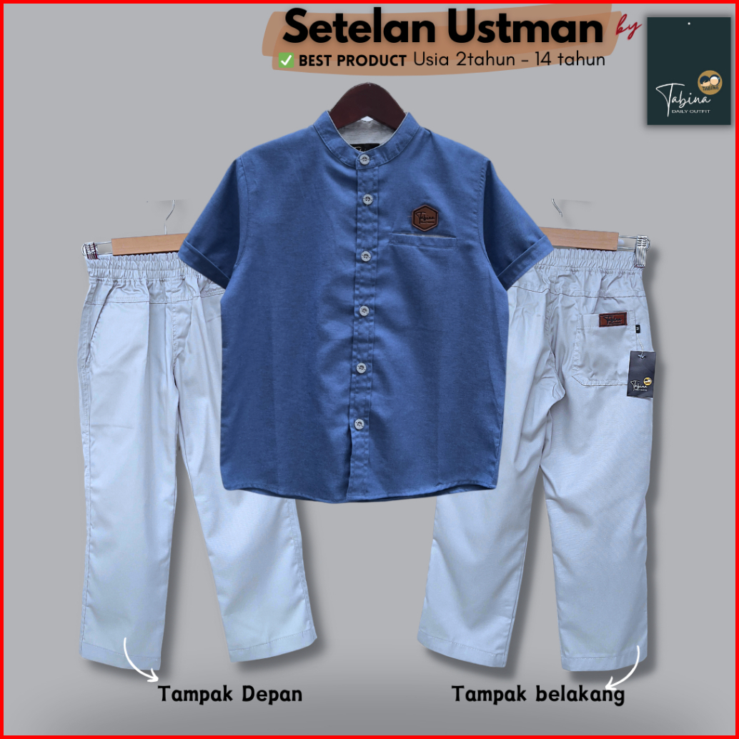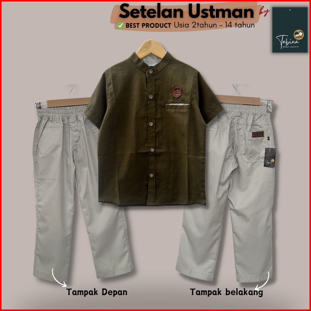 Setelan Kemeja Lengan Pendek Seri Ustman Untuk Anak Laki Laki Usia 1 - 16 Tahun Remaja
