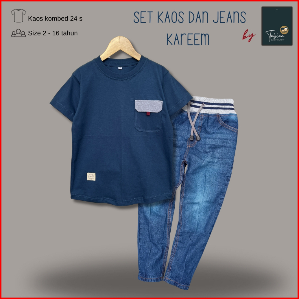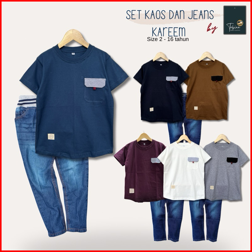 Tabina Setelan Kaos Anak Laki Laki Remaja Lengan Pendek Seri Kareem Whisker Usia 2 Sampai 16 Tahun