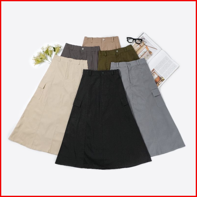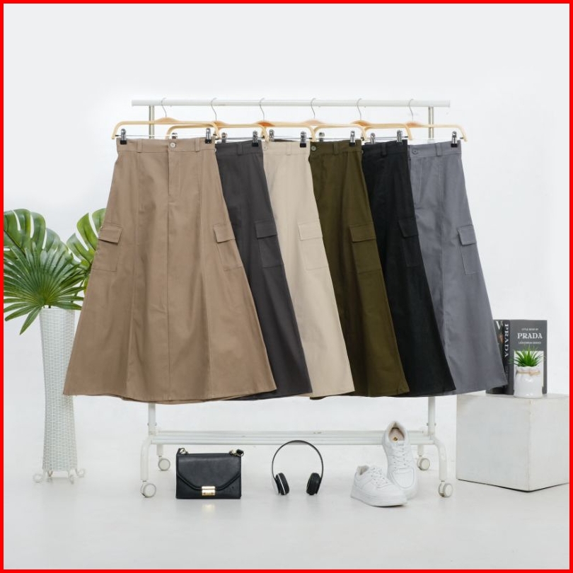 Rok Cargo Duyung Wanita Premium Canvas Twill Stretch Korean Style Kekinian