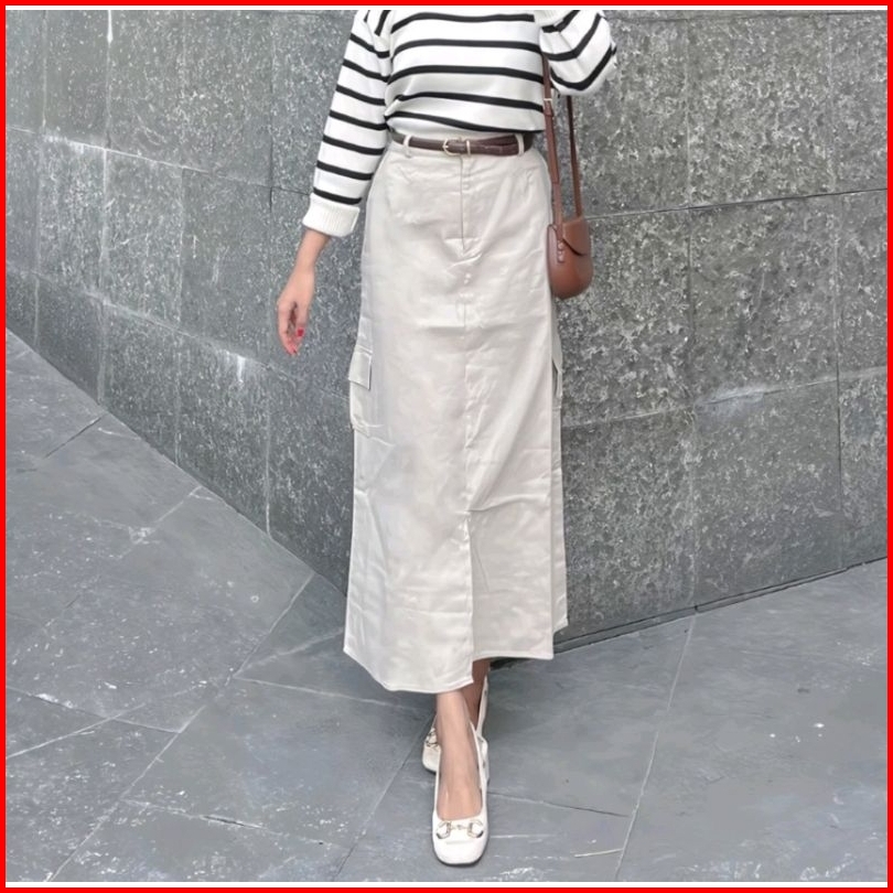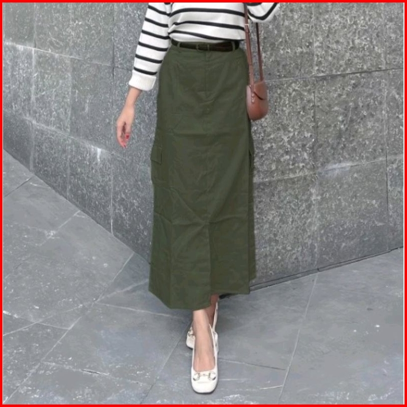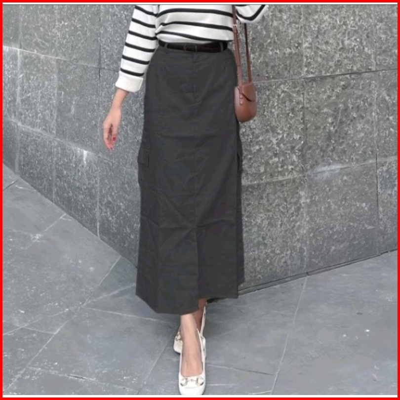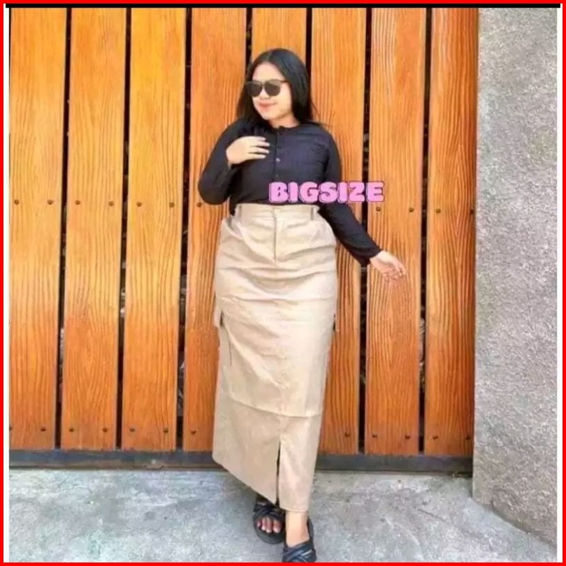 Kenzy Cargo Skirt Rok Cargo Jumbo Bahan Katun Twill Tebal Kekinian Rok Kargo Belahan - Rok Cargo Belah Depan Wanita Jumb