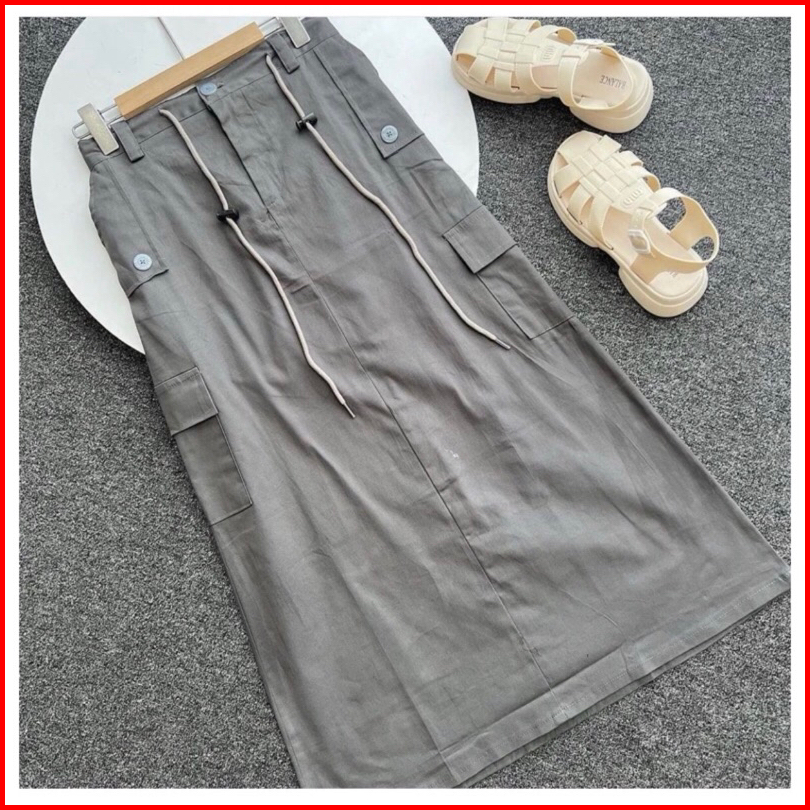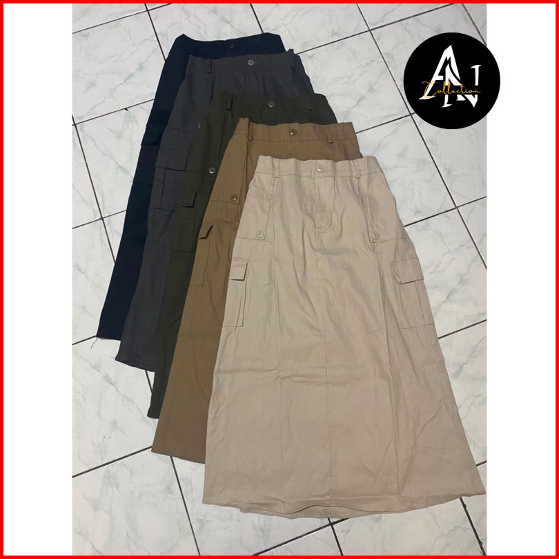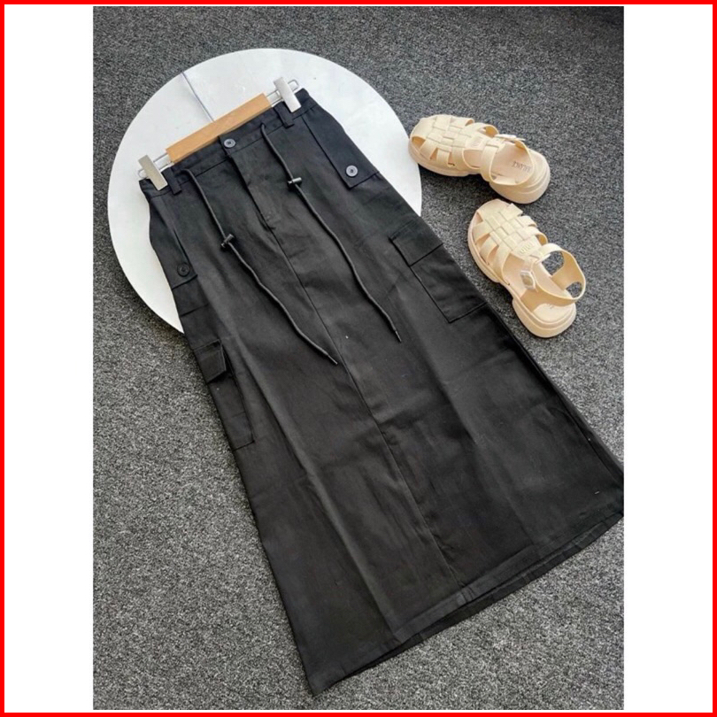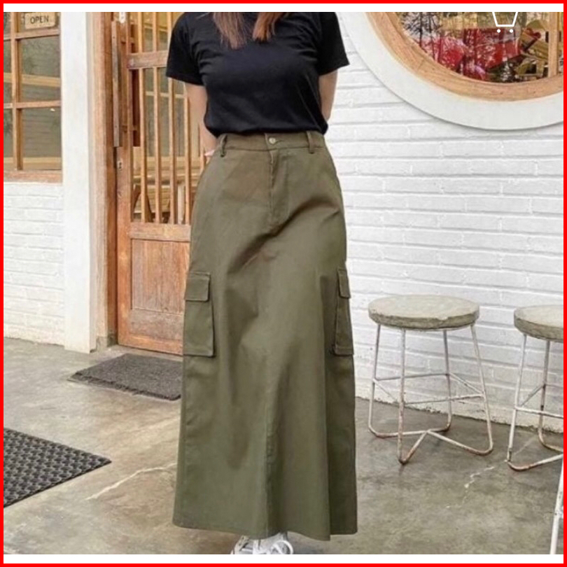 Rok Cargo Wanita Panjang Korean Lily Skirt Style Kekinian Rok Cargo Twill Import