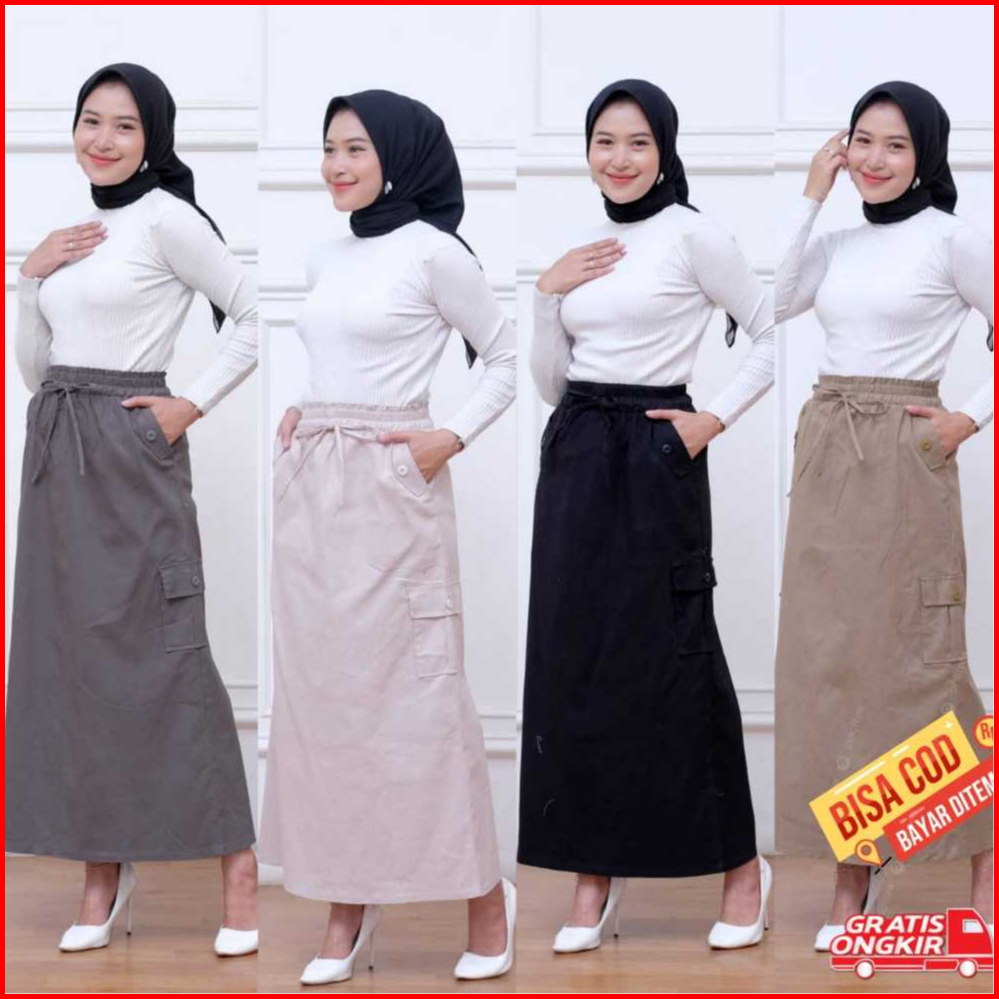 Rok Cargo Twill Combed Rok Kargo Skrit Rok Cewek Serut Rok Korean Style Rok Jumbo Panjang
