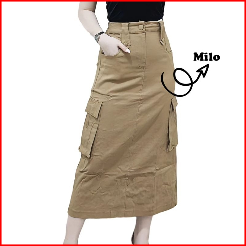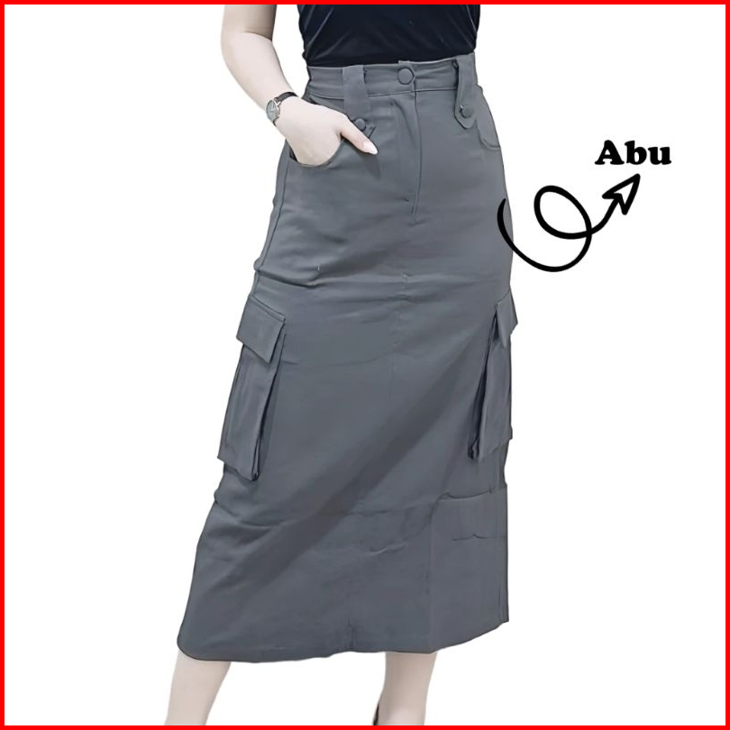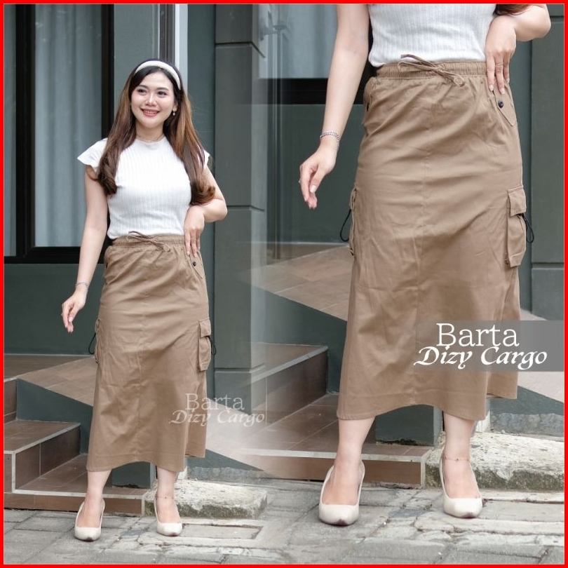 Rok Cargo Dizy Skirt Cargo Twill Combed Premium Stretch Wanita Maxi Skirt Lembut Melar
