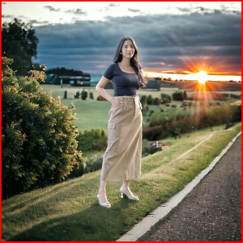 Rok Panjang Skirt Cargo Rok Cargo Twill Premium Maxi Skirt Lembut