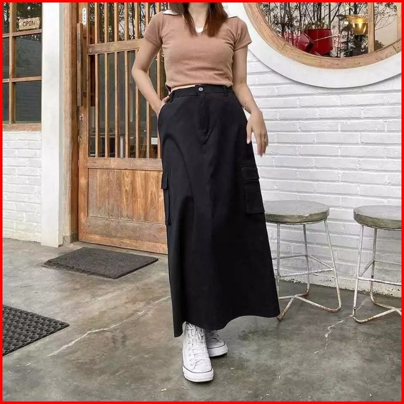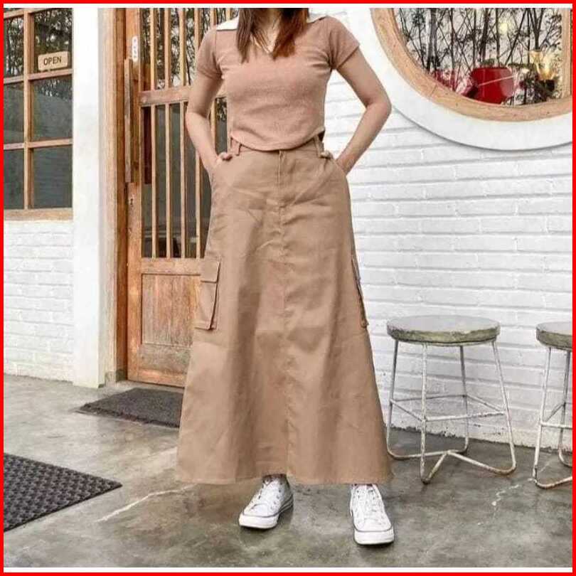 Rok Cargo Wanita Panjang Terbaru Rok Korean Style Kekinian Rok Cargo Wanita Jumbo