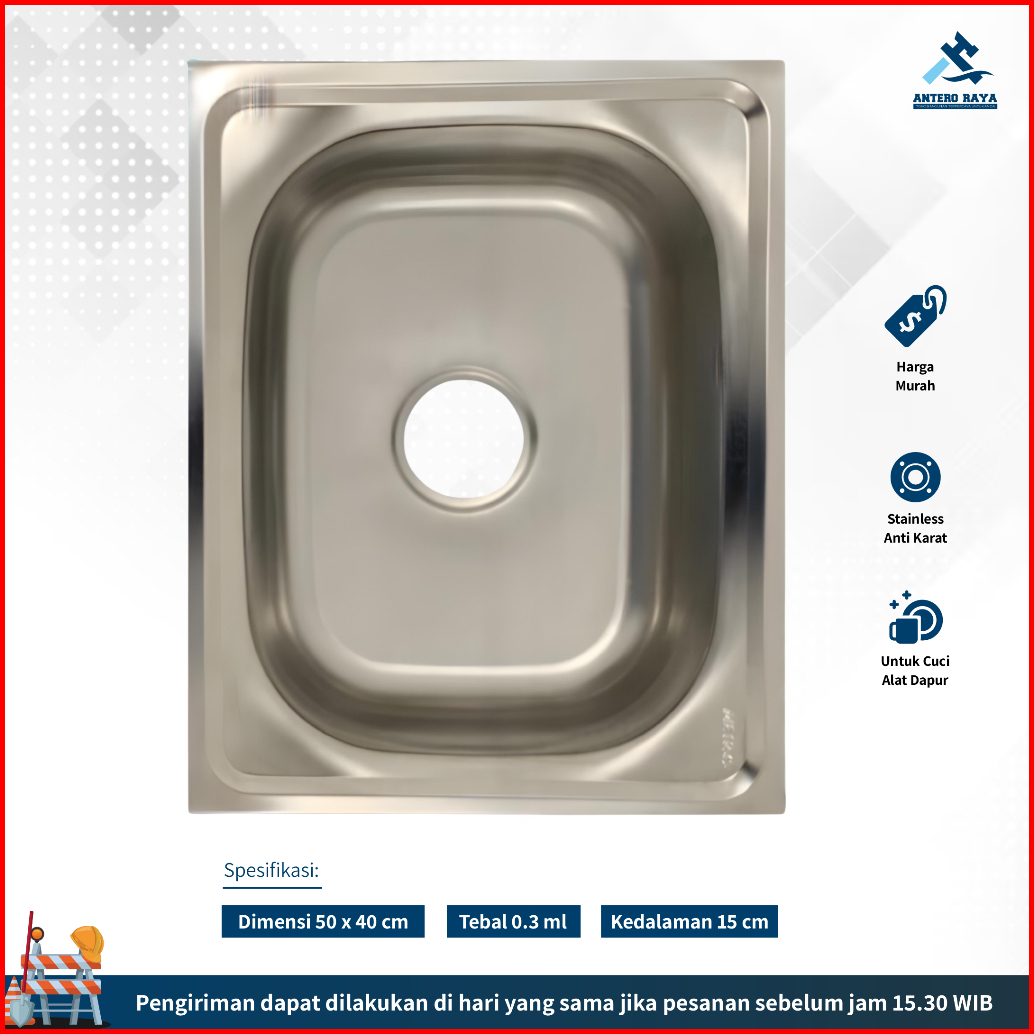 Wastafel Bak Cuci Piring Stainless 50x40 Cm Tebal Anti Karat