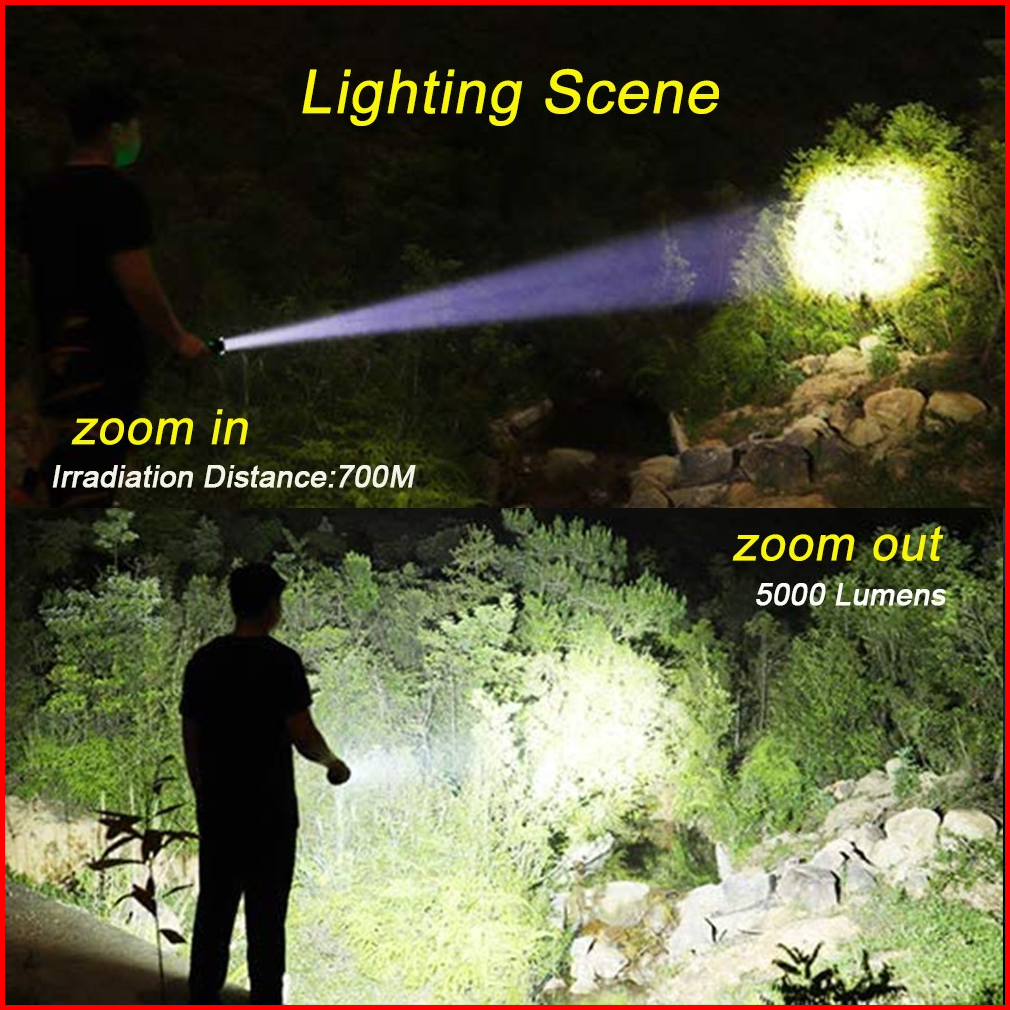 Senter T8 Led-xpe Sorot Super Terang Baterai 18650 Glare Zoom Outdoor Lampu Senter Led Zoom