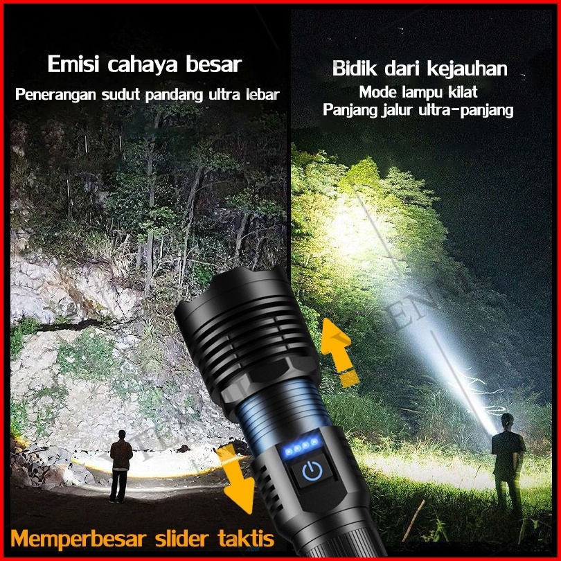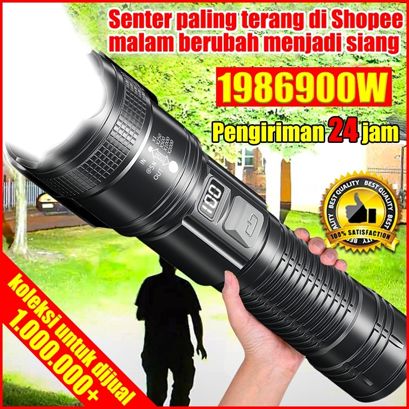 Grade Militer Jerman Beli 1 Gratis 1 Senter Jarak Jauh 10km Waterproof Awet 99 Tahun Senter Kepala 500 Watt Senter Led C