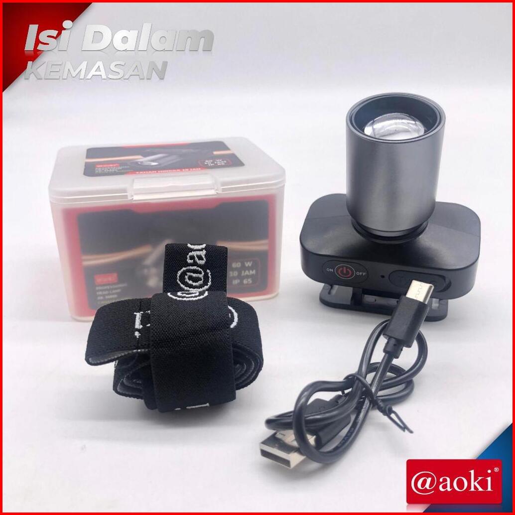 Aoki Senter Kepala Cahaya Maksimal Plus Rechargepro Dengan Usb-c 60w Fokus Penyebaran Zoom