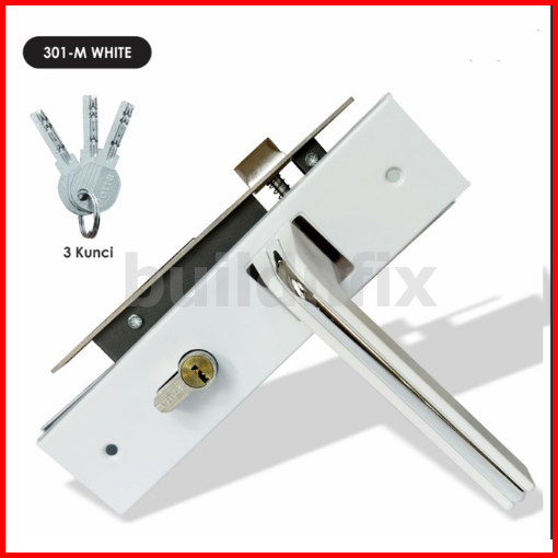 Handle Set Kunci Pintu Tanggung Handle Pintu Putih 20cm Kotak - Potta
