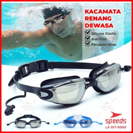 Kacamata Renang Dewasa Anti Embun Dan Uv Protection Ada Penutup Telinga Speed Garansi Original