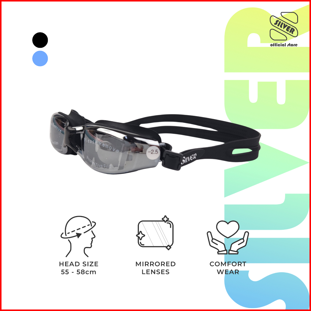 Silver Kacamata Renang Mirror Minus Dewasa Adult Prescription Mirrored Swim Goggles - 67271.968m