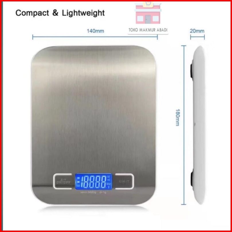 Timbangan Dapur Digital Stainless Steel 5kg Kitchen Scale Premium - Timbangan Digital Electronic Kopi Kue