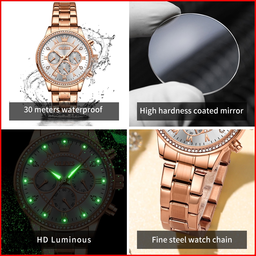 Olevs Jam Tangan Wanita Anti Air Original Fashion Korea Analog Terbaru Casual Unik Mawar Women Watch