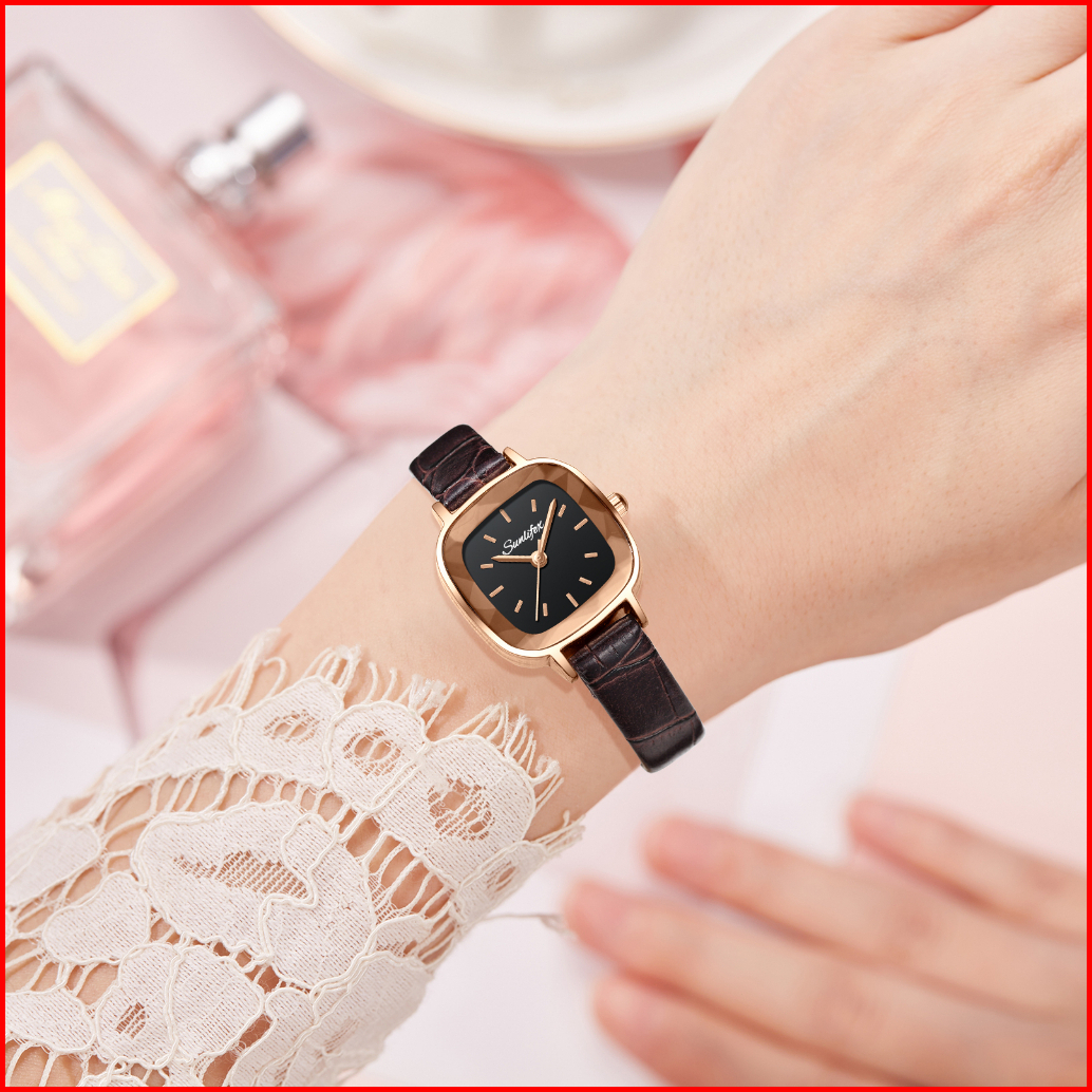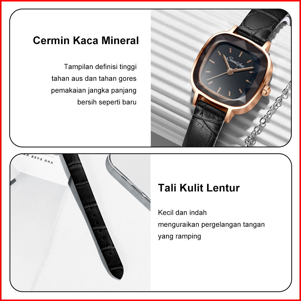 Jam Tangan Wanita Kecil Jam Original Square Dial Tali Kulit Jam Tangan Cewek Anggun Santai 18