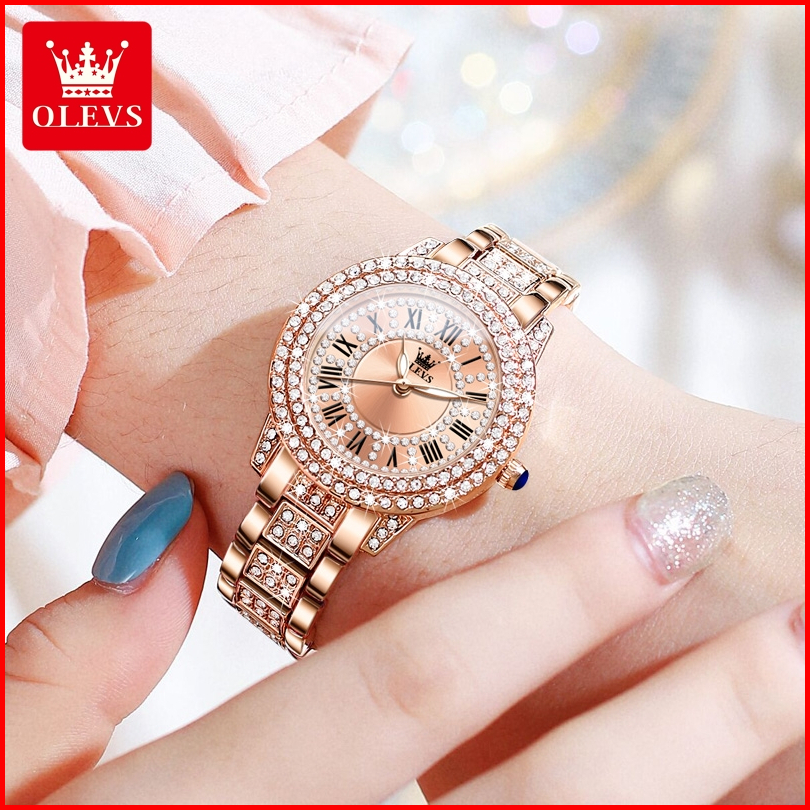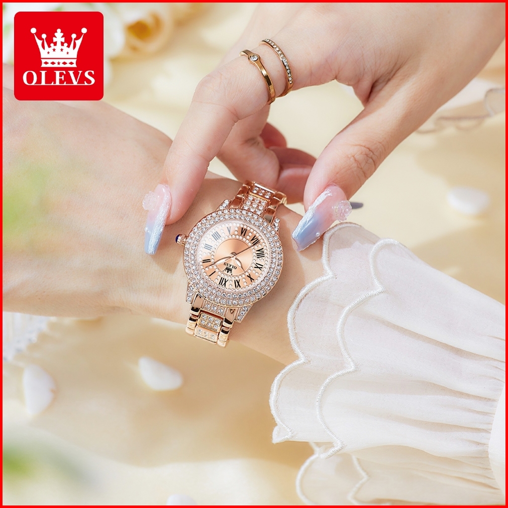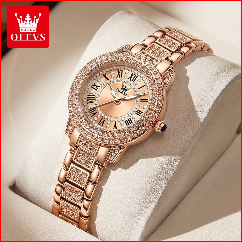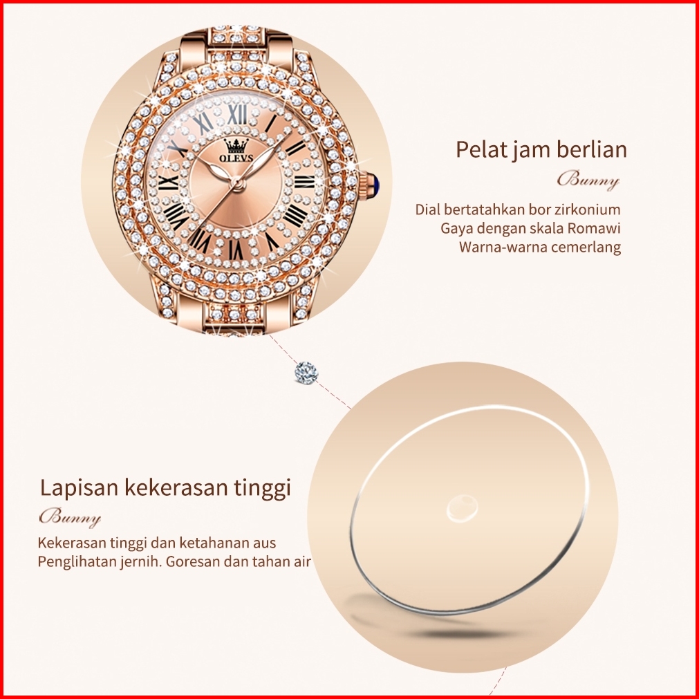 Olevs Jam Tangan Wanita Anti Air Original Unik Berlian Stainless Steel Fashion Bisnis Rose Analog Womem Watch Model 9943