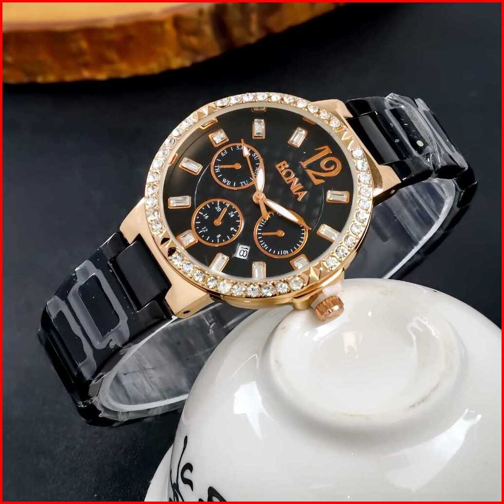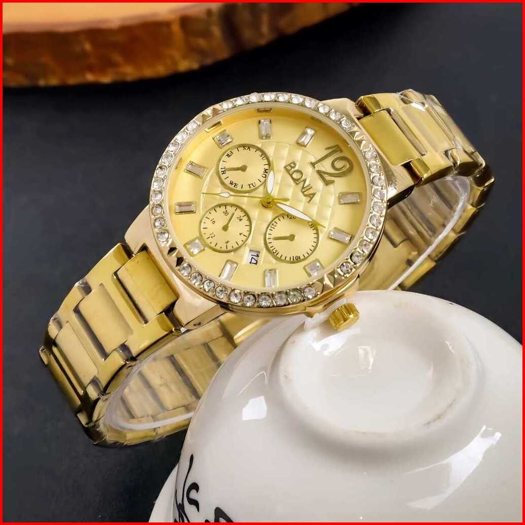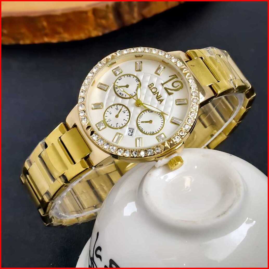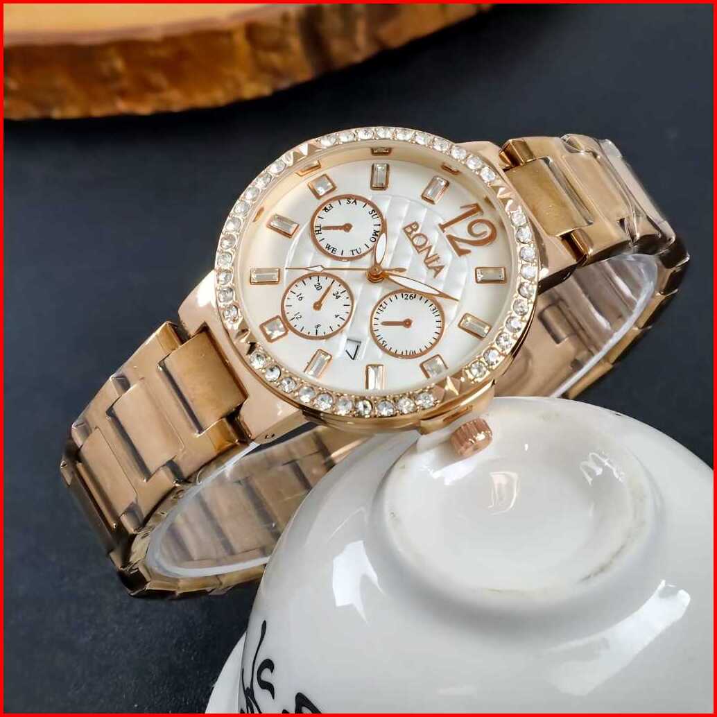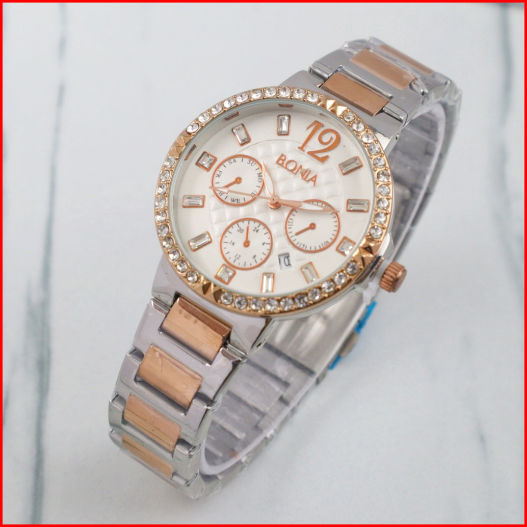 Jam Tangan Cewek Kode-5202 Strap Rantai Model Terbaru Kualitas 01 Dapat Box Batrai Cadangan