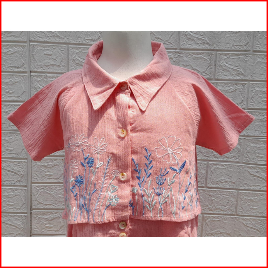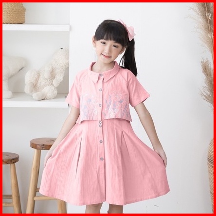 222701 Nywan Apparel Baju Pakaian Gaun Dress Anak Lebaran Perempuan Crinkl Salem Bordir Bunga