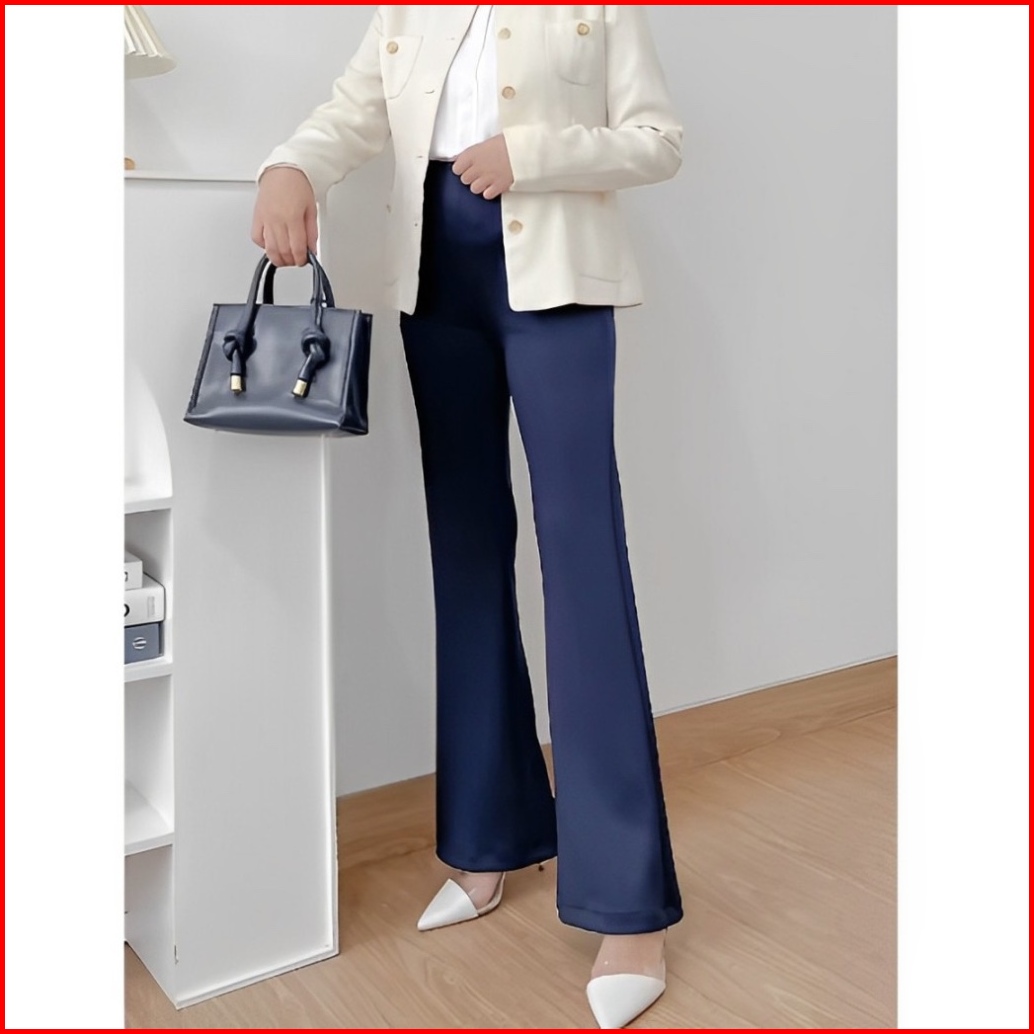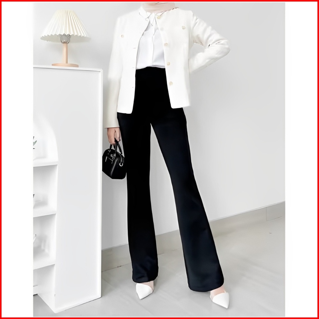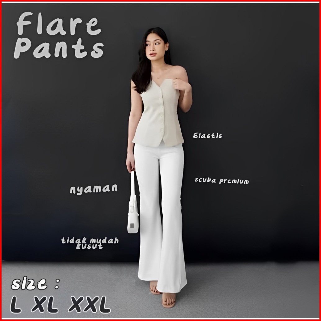 Celana Flare Pants Scuba Cutbray Pinggang Highwaist Full Karet Elastis Tanpa Jahitan