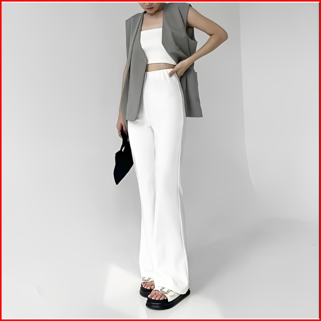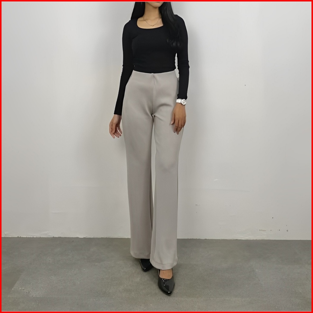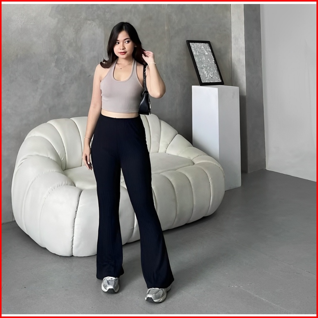 Celana Flare Pants Scuba Cutbray Pinggang Highwaist Full Karet Elastis Tanpa Jahitan
