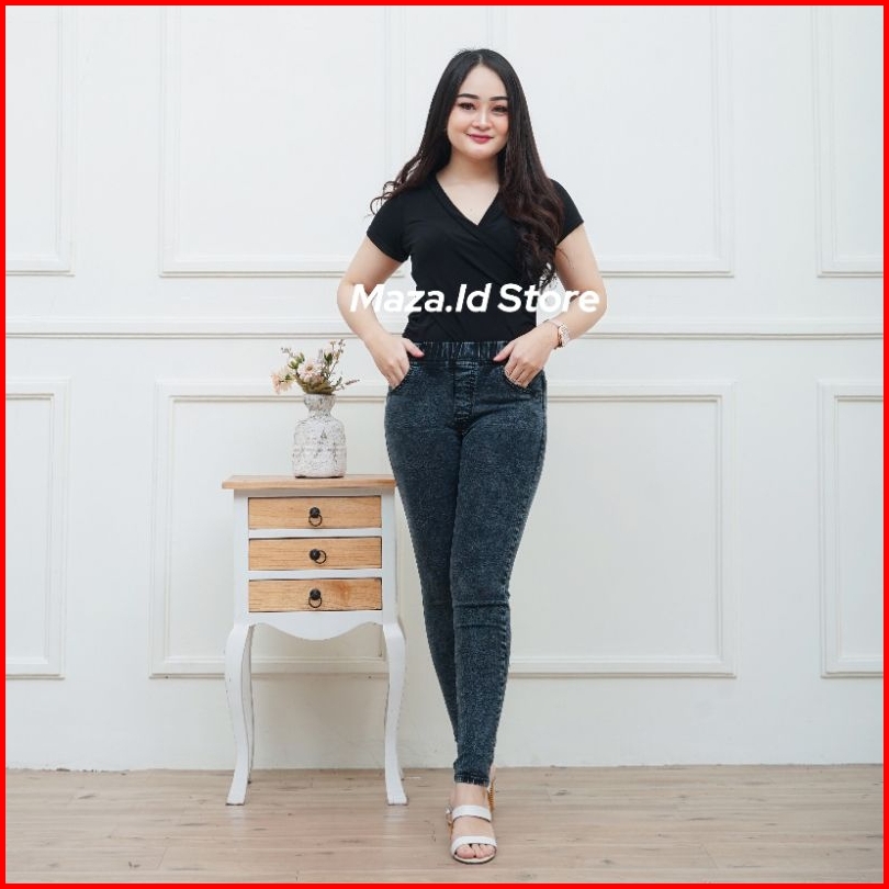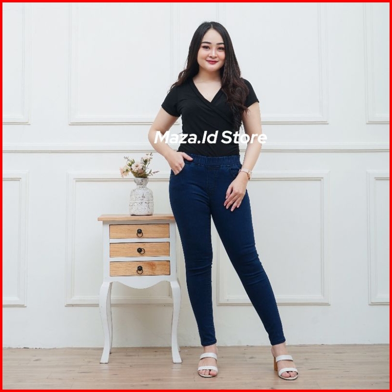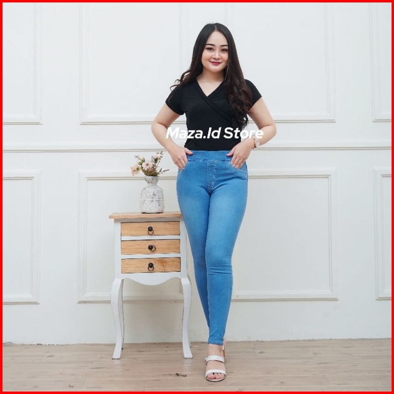 Celana Legging Jeans Pinggang Karet Slimfit Celana Wanita Legging Kekinian