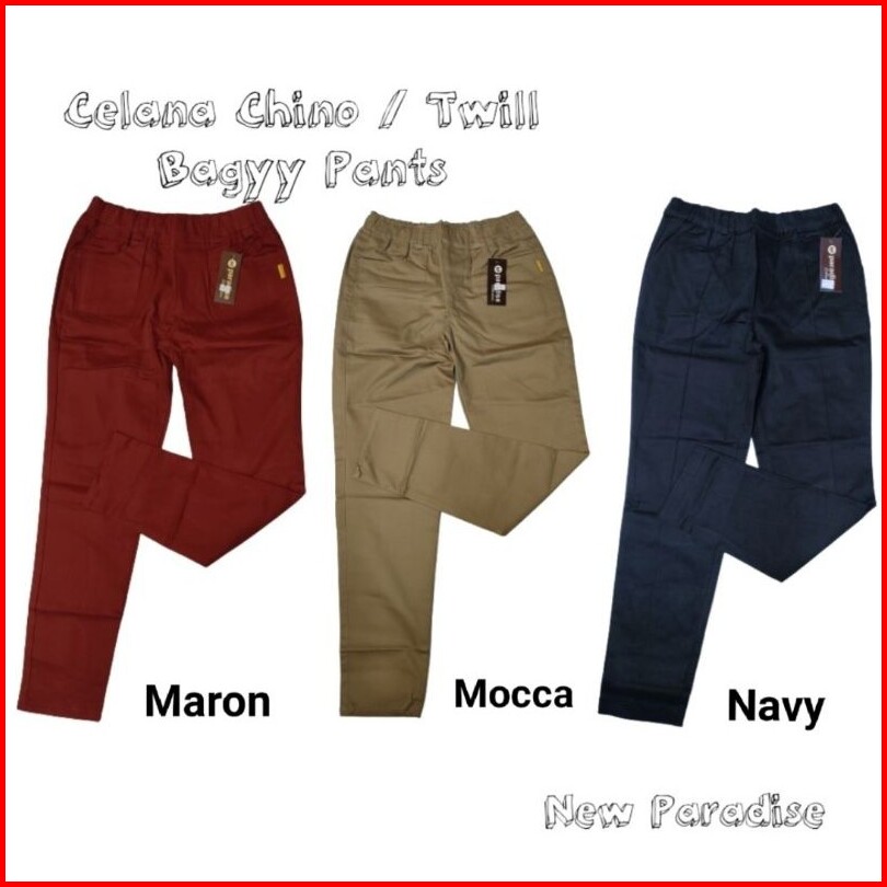Chino Pants Wanita Pinggang Karet Baggy Pants Wanita Celana Chino Panjang Celana Wanita Celana