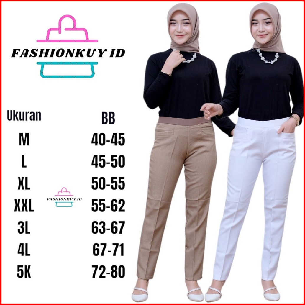 Fashionkuy-celana Kerja Wanita Kantor Terbaru Karet Pinggang Bahan Woll Premium