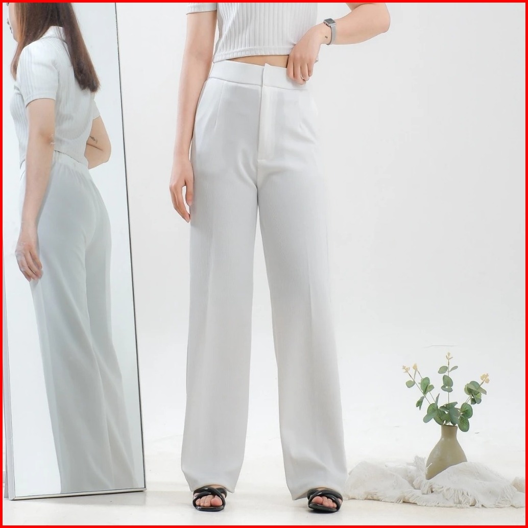 Long Cullote Gizka Pants - Celana Murah Berkualitas Kulot Rib Knit Premium - Korean Loose Pants Trouser Wanita