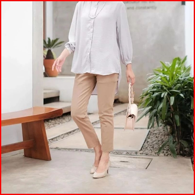 Ankle Pants Celana Panjang Wanita Slimfit Katun Stretch
