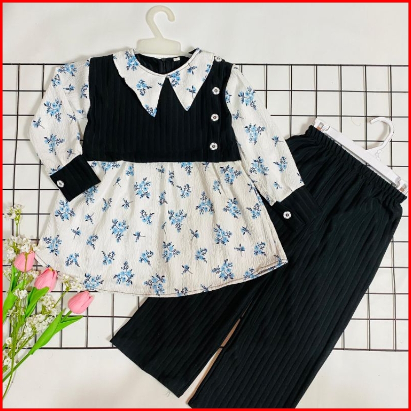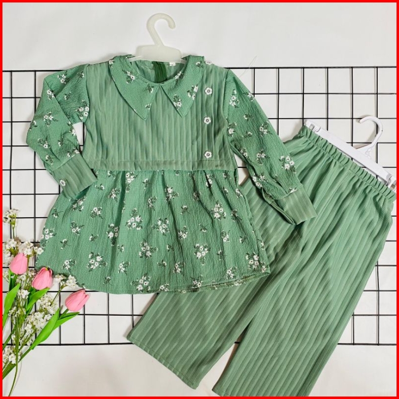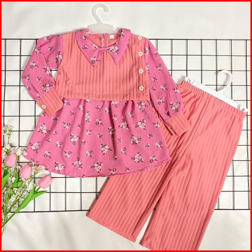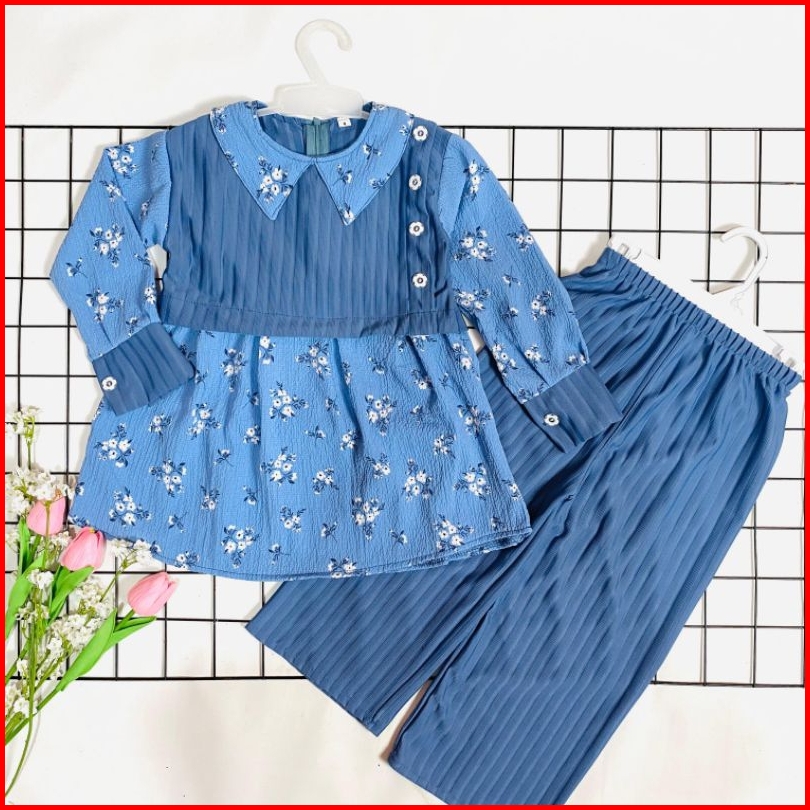 Setelan Anak Perempuan Ii One Set Dania 2-12 Tahun Bahan Knit Mix Crinkle