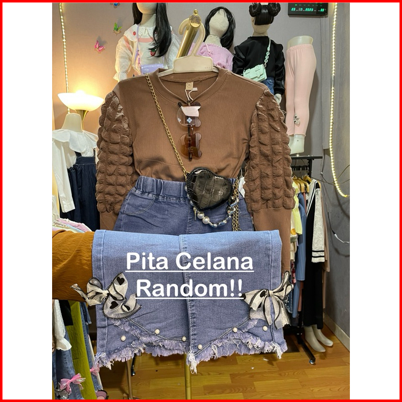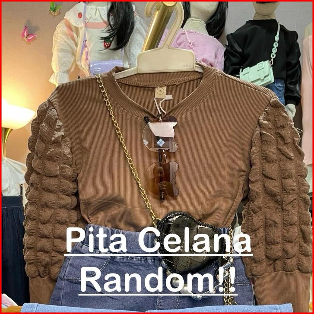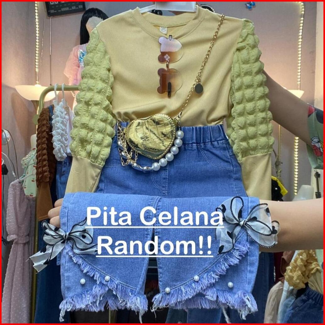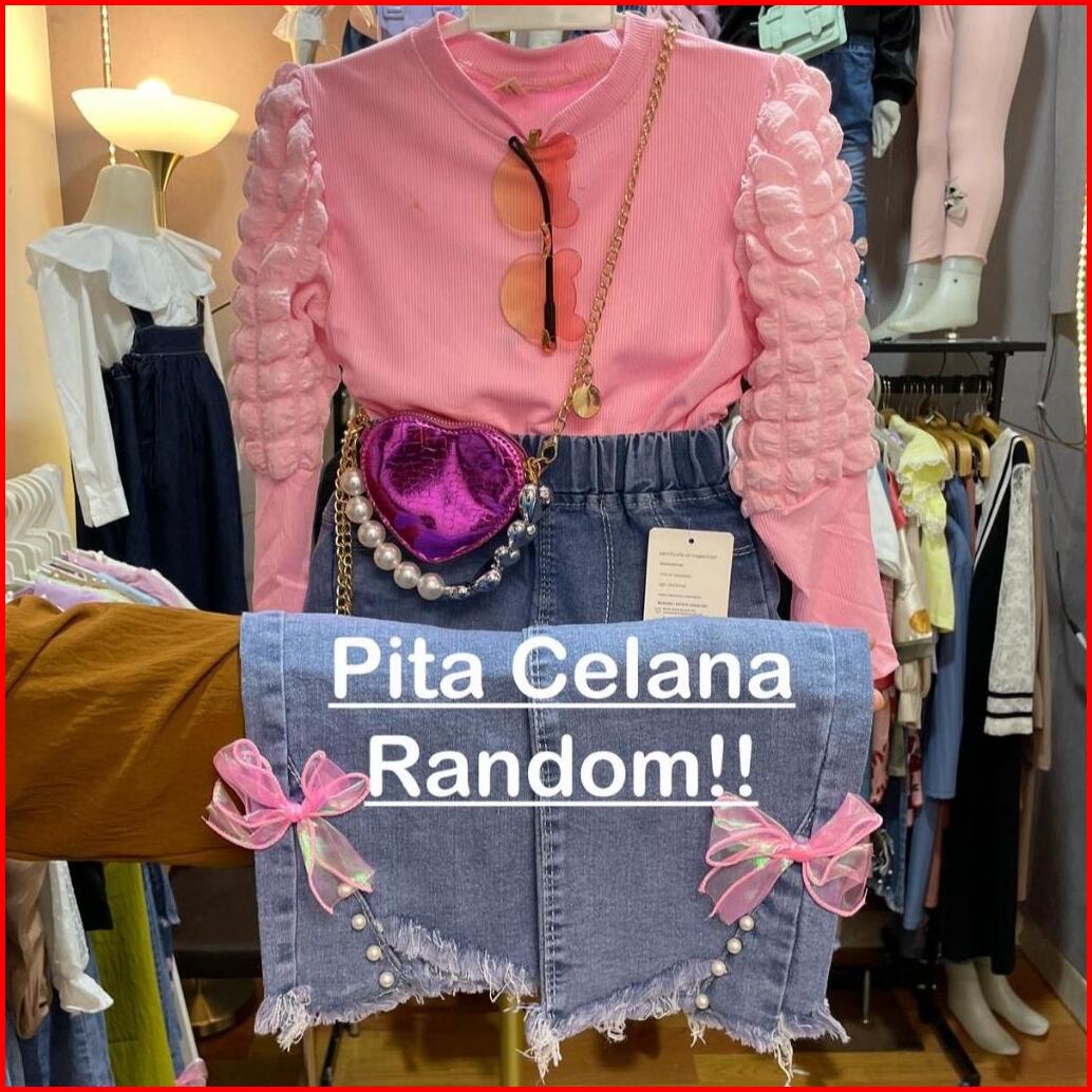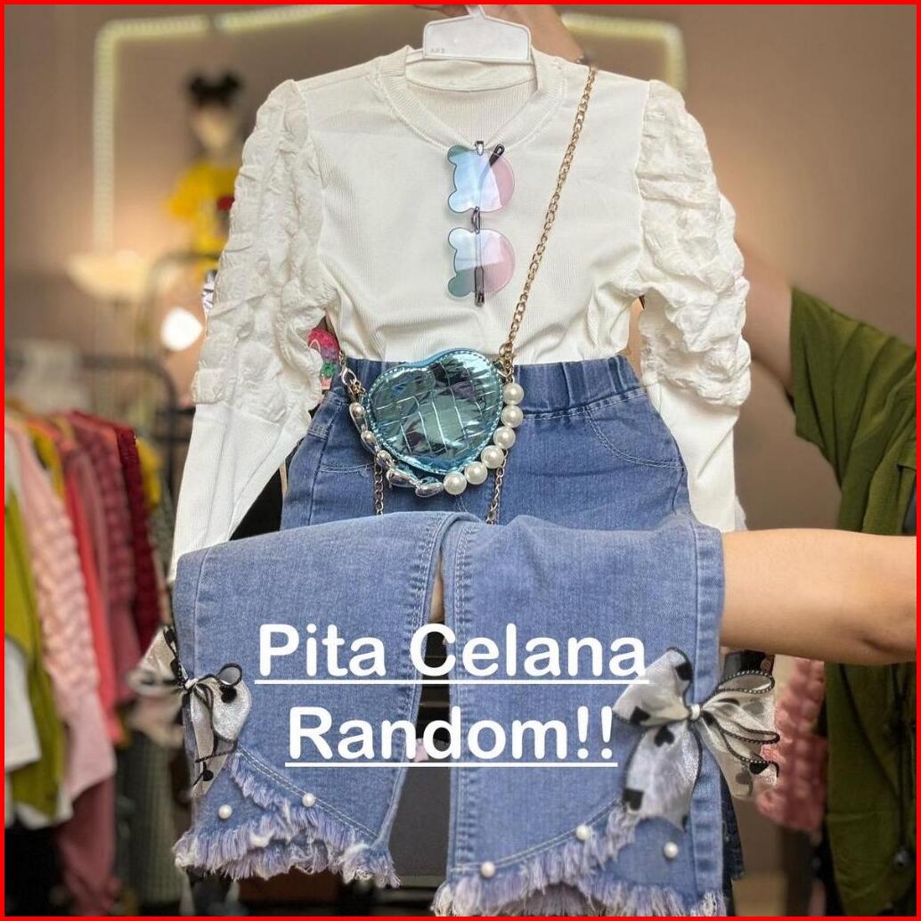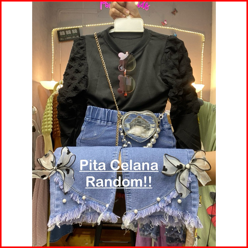 2-12thn Ponemokids Setelan Anak Perempuan Pompom Motif Celana Kulot Random Tidak Termasuk Tas Kacamata Kulot Organza Kek