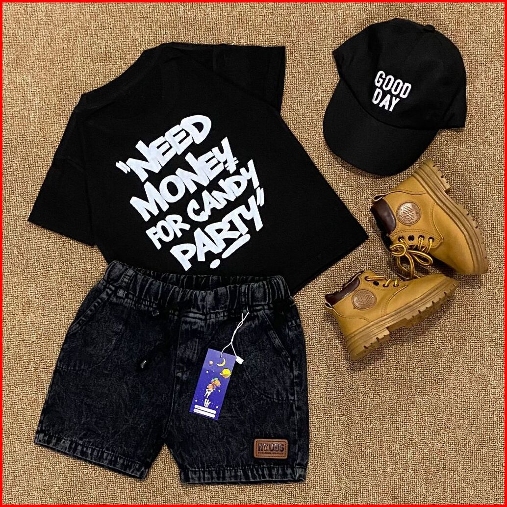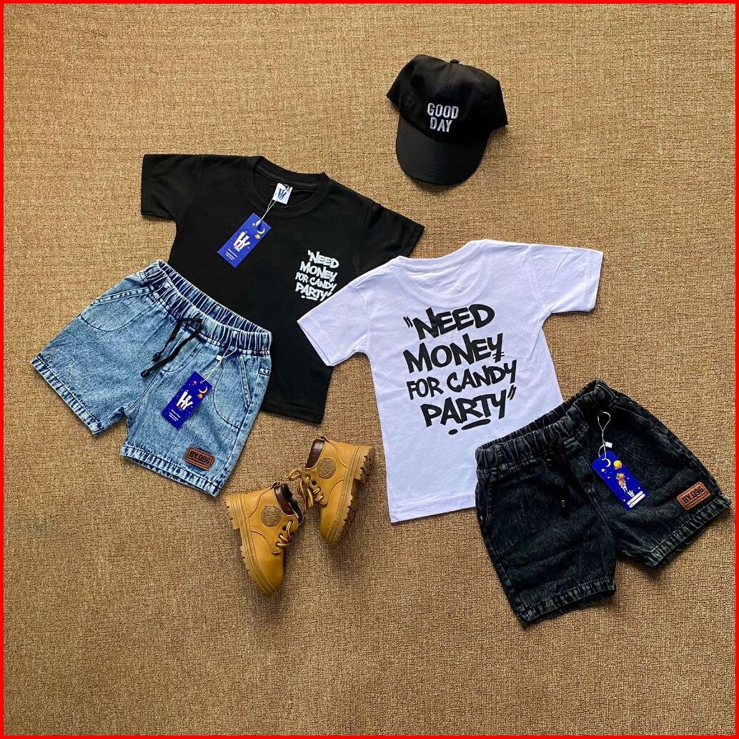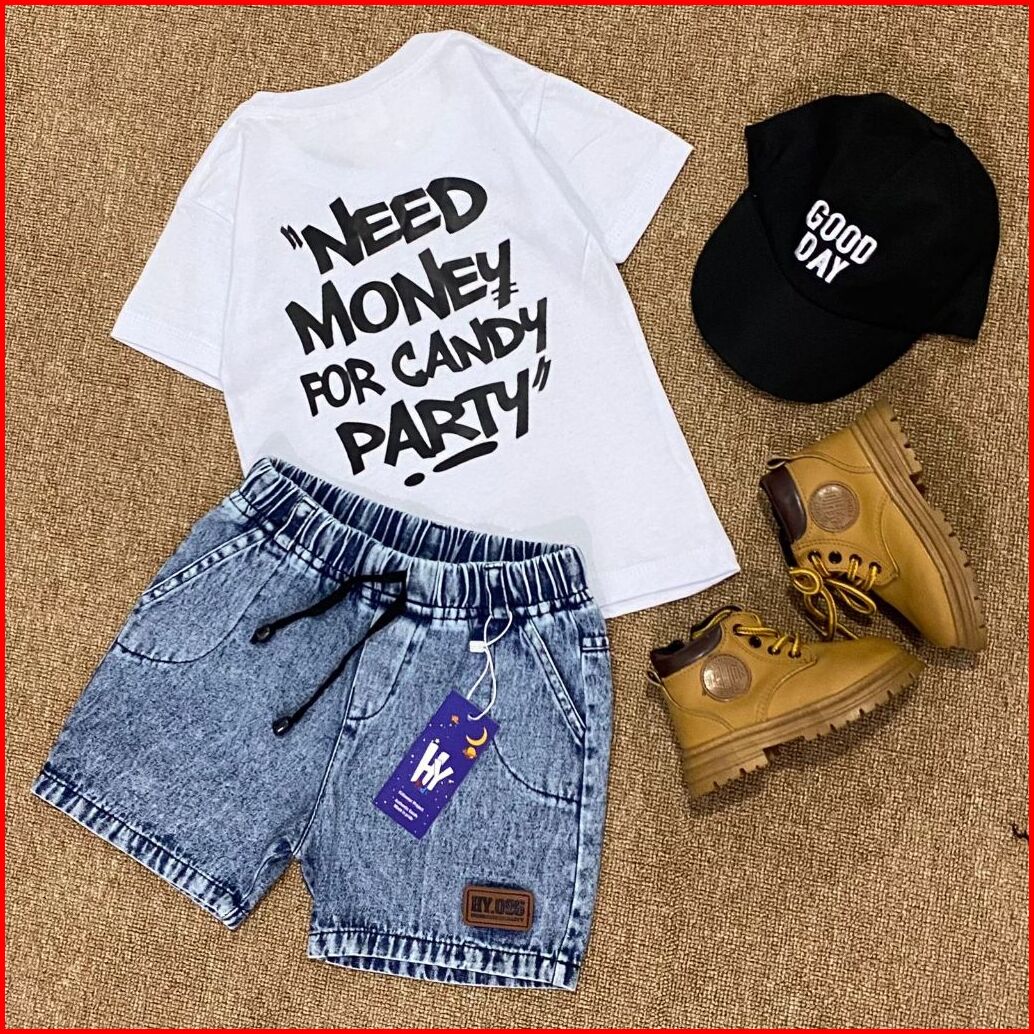Setelan Jeans Anak Motif Need Money Series Usia 1-6 Tahun Laki-laki Dan Perempuan