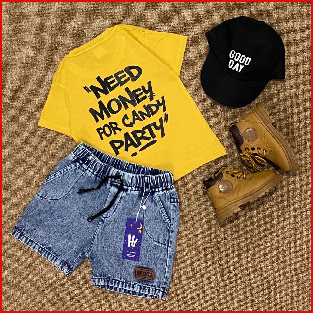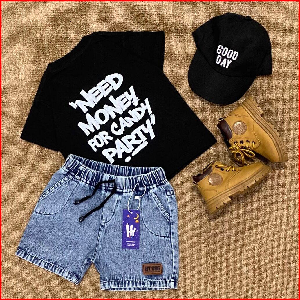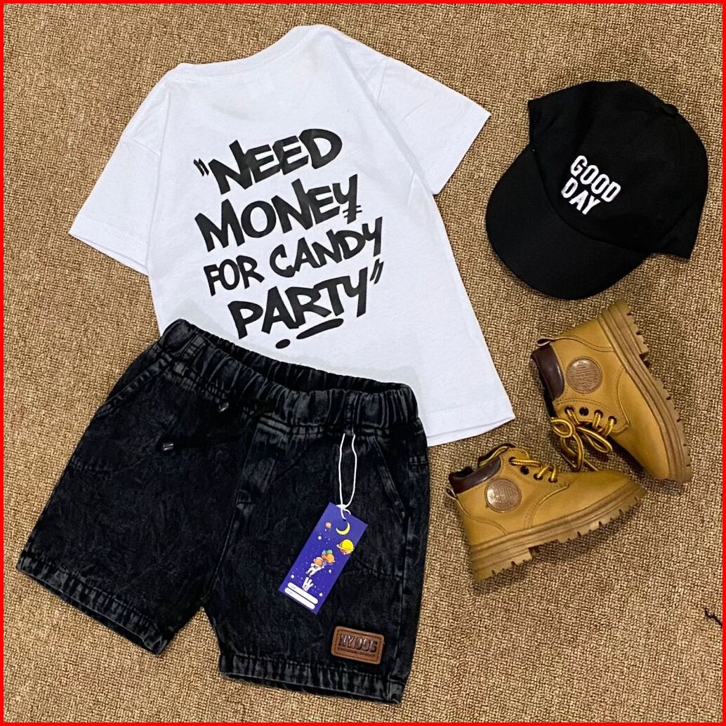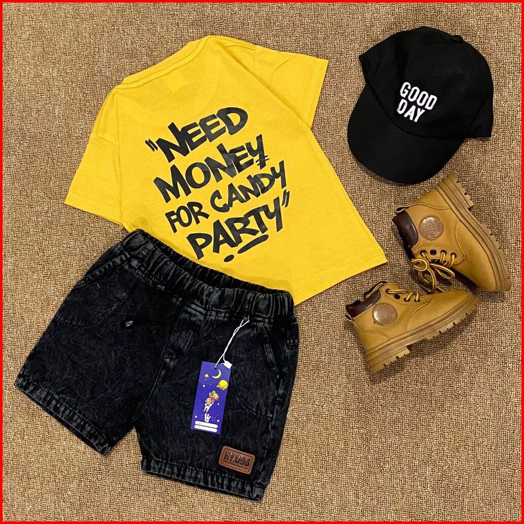 Setelan Jeans Anak Motif Need Money Series Usia 1-6 Tahun Laki-laki Dan Perempuan