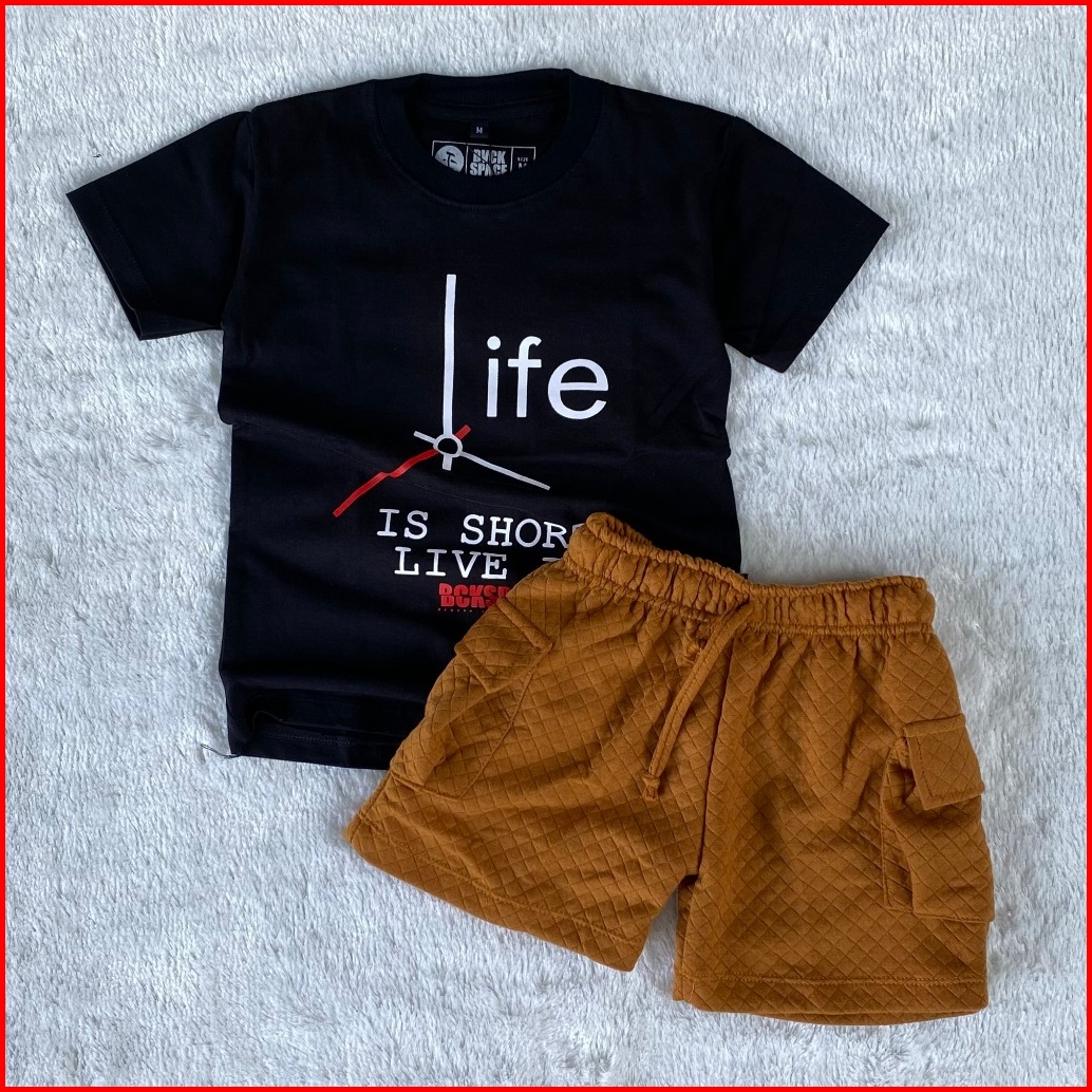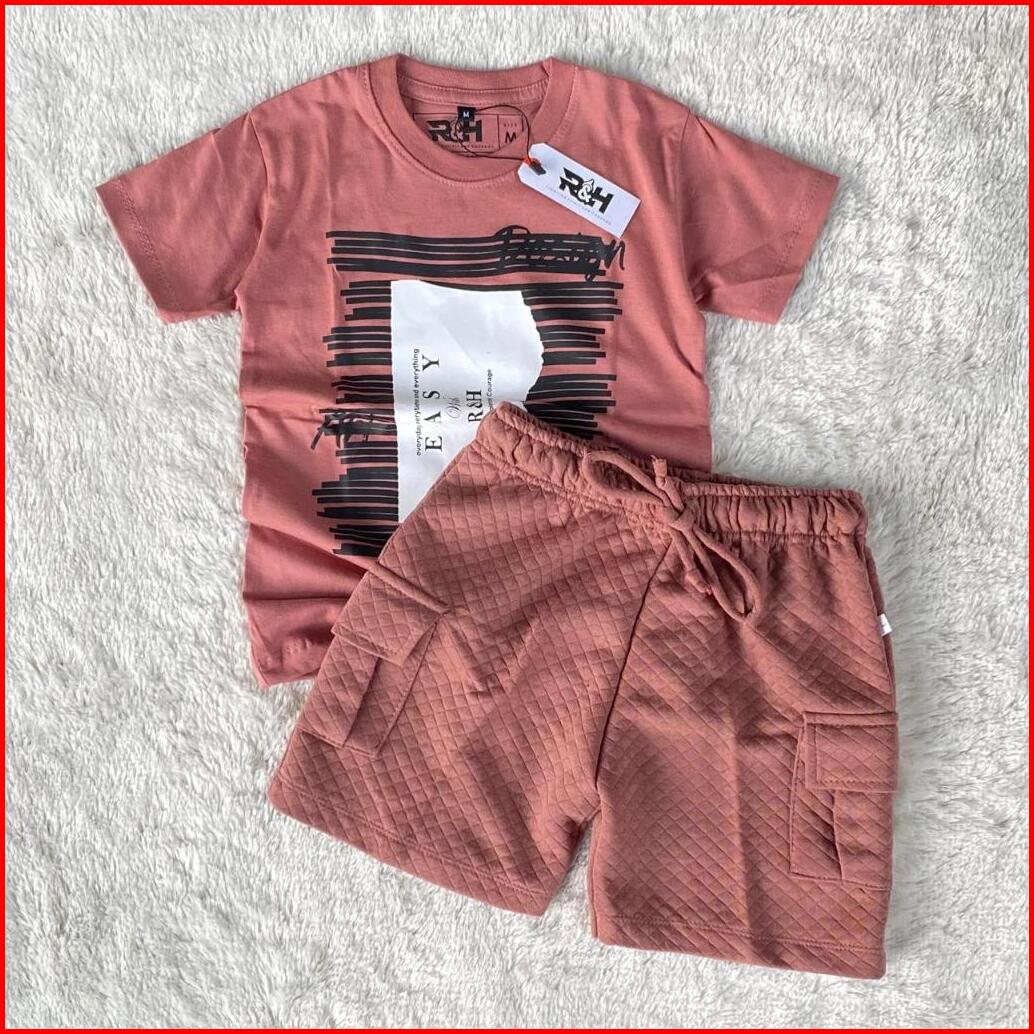 Setelan Celana Anak Bahan Knit Diamond Dan Kaos Distro Lengan Pendek Usia 4-12 Tahun