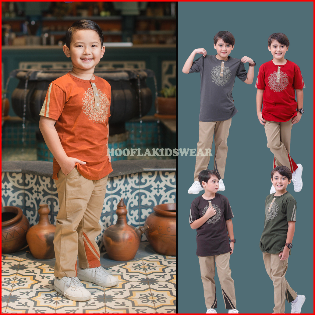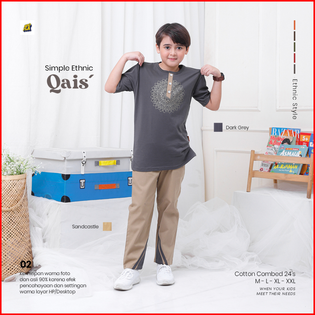 Setelan Kaos Anak Laki Laki Cowok Usia 5 - 12 Tahun Qais Hooflakids Set Pakaian Baju Anak Celana Anak Cowo Pria Hoofla K