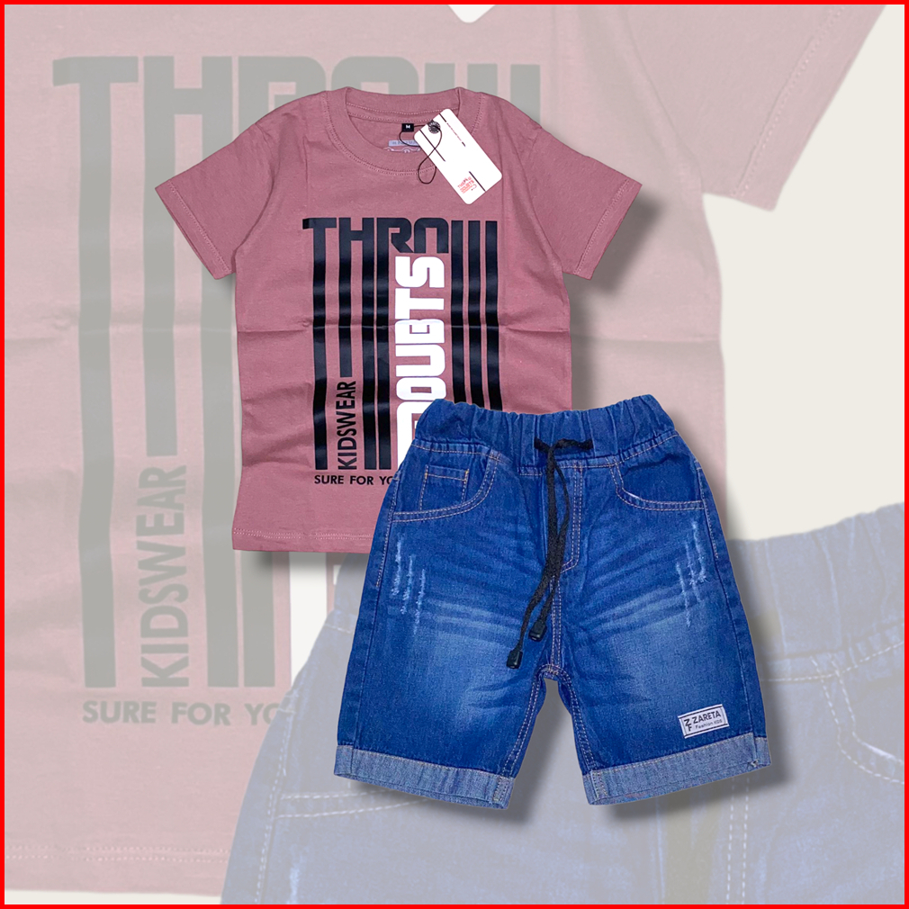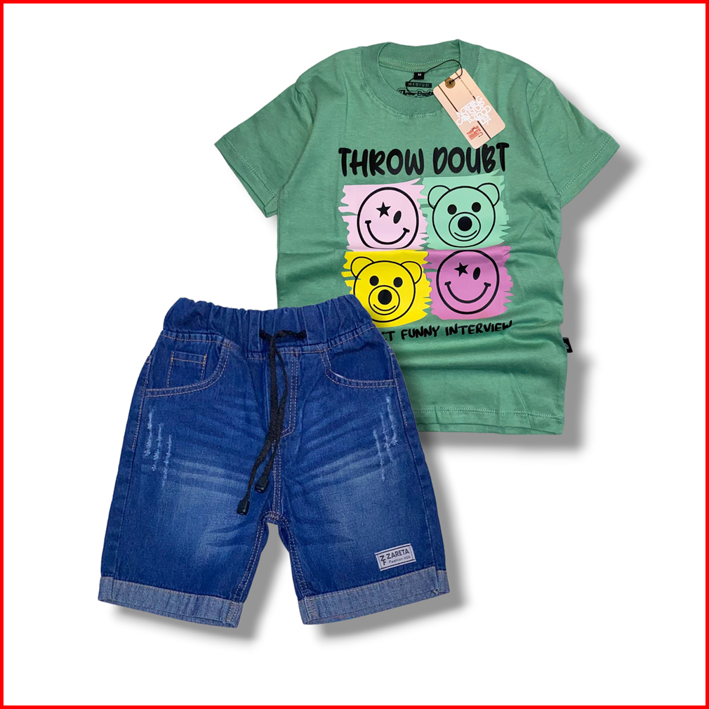 Setelan Jeans Pendek Anak Dan Kaos Bahan Katun Usia 4-12 Tahun Dusty Throw Doubts