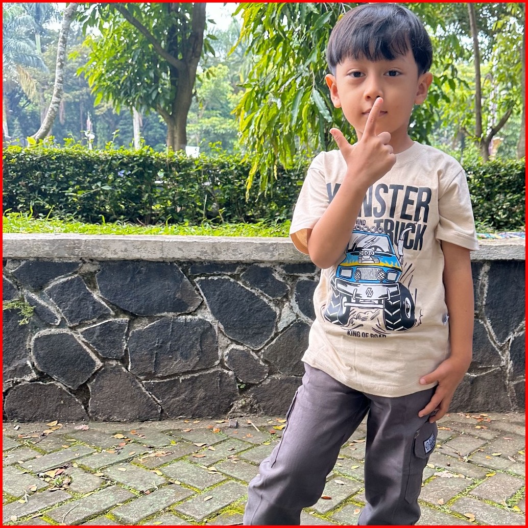 Kidsuka Kidswear Setelan Baju Kaos Anak Laki-laki Umur 3-12 Tahun Celana Panjang Kargo