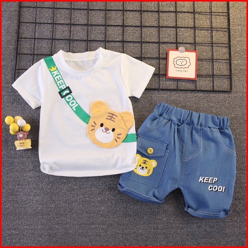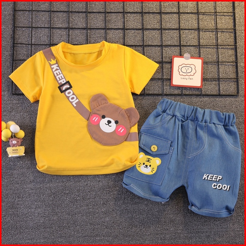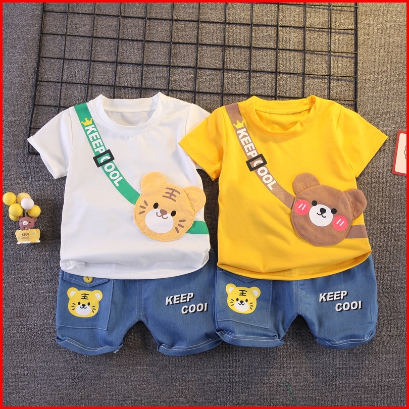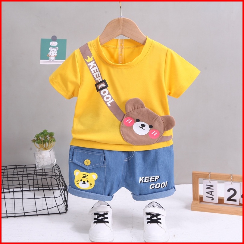 Baju Setelan Anak Laki Laki Import Model Sling Bag Beruang Bahan Katun