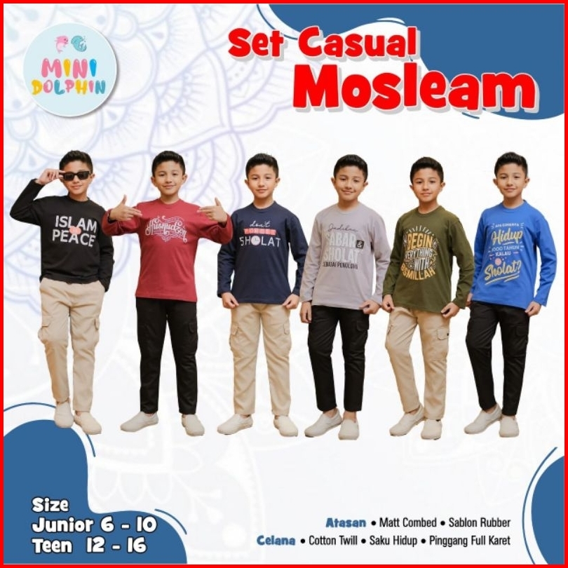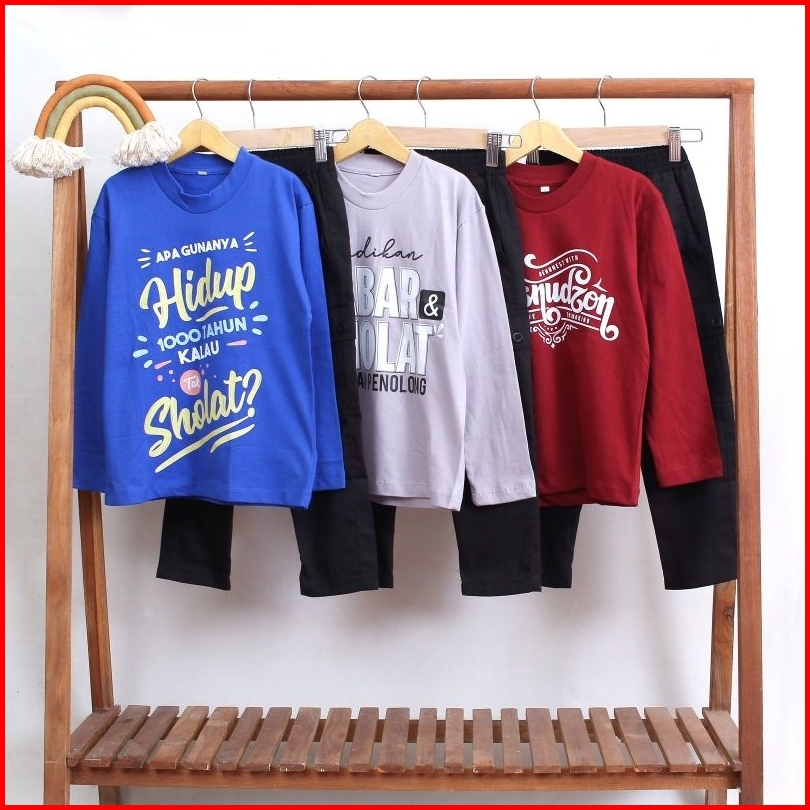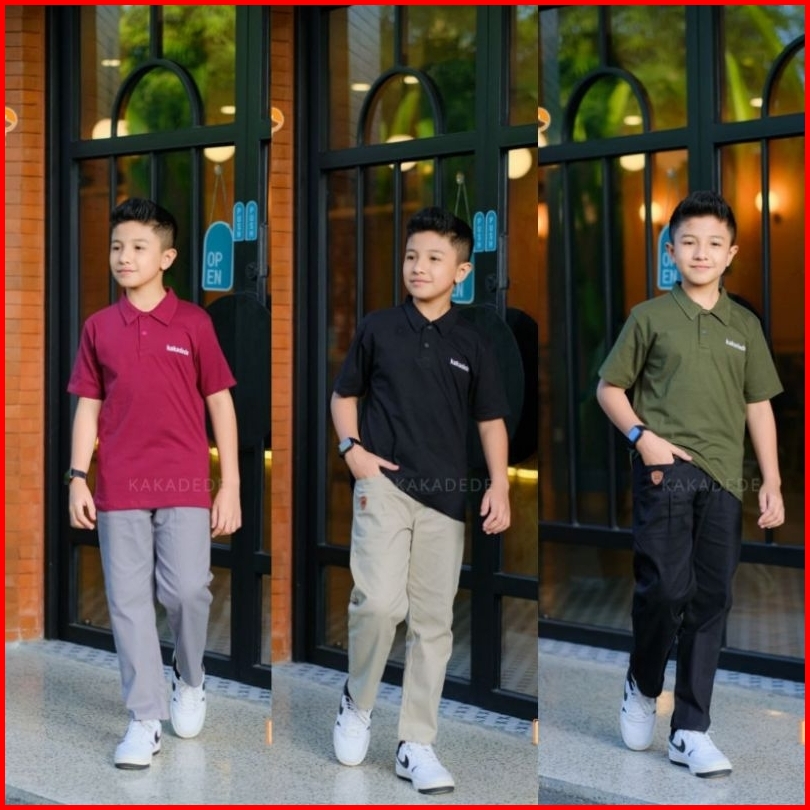 Setelan Anak Laki-laki Kaos Lengan Panjang Mini Dolpin Dan Setelan Anak Kaos Pendek Remaja Laki-laki Celana Chinos Devan