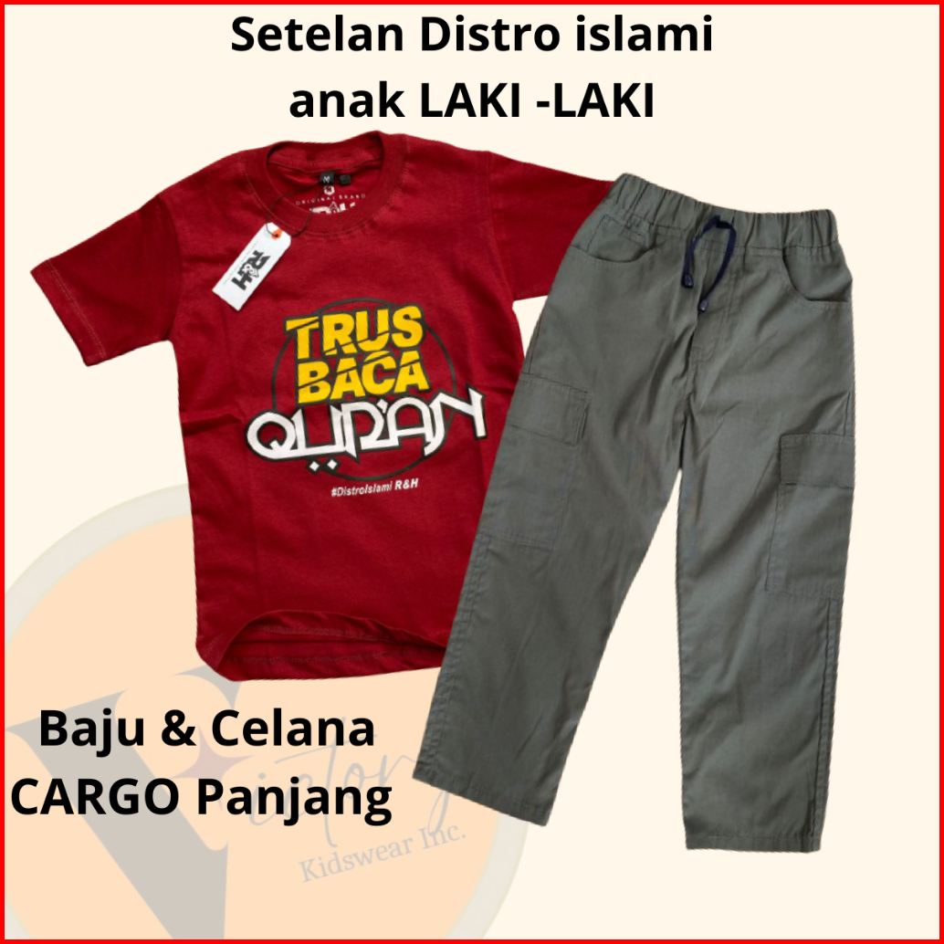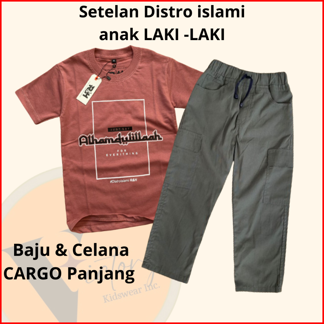 Setelan Baju Muslim Anak Laki Laki Umur 4-12 Tahun Setelan Kaos Anak Laki Laki Motif Islami