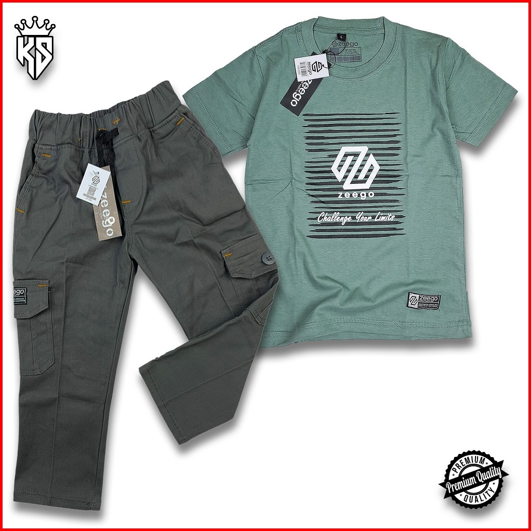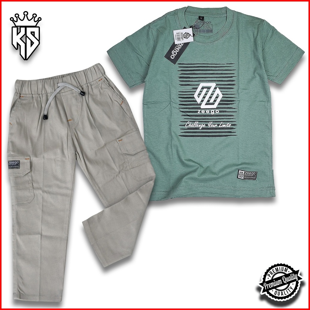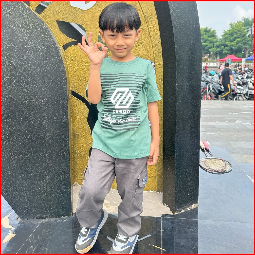 Setelan Baju Kaos Distro Anak Laki-laki Celana Chinos Panjang Kargo Umur 3-12 Tahun