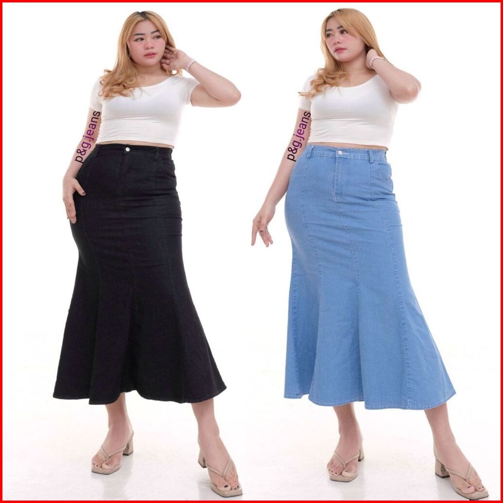 Pg Jeans - Mermaid Midi Skirt Rok Duyung Wanita Casual Jeans Kancing Karet