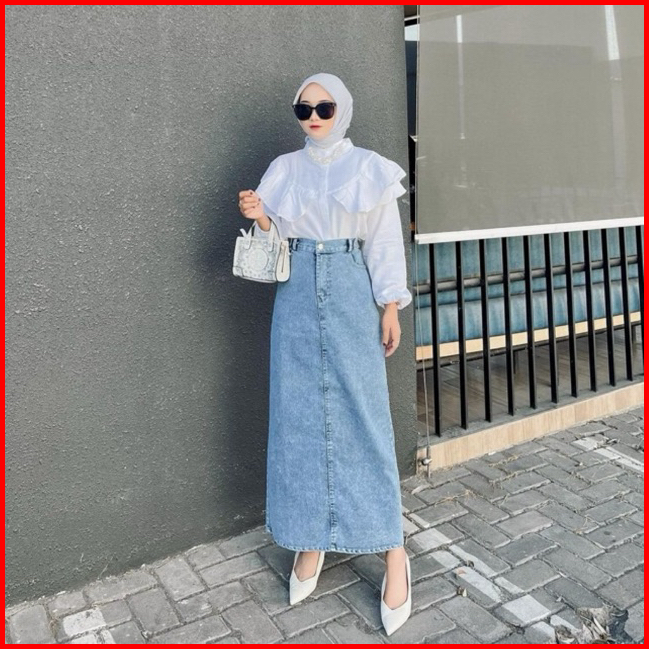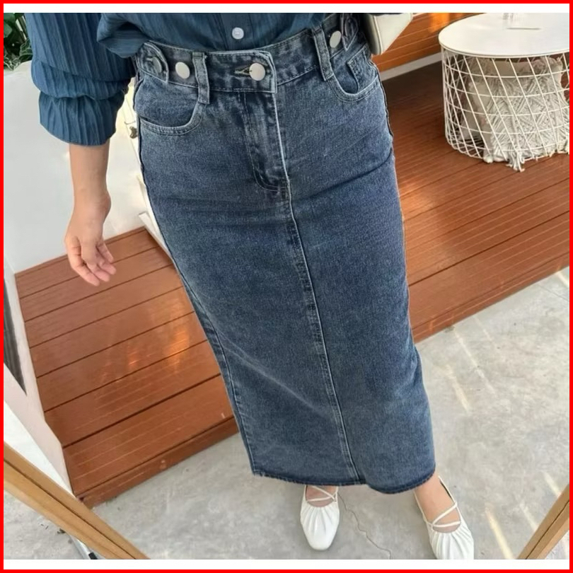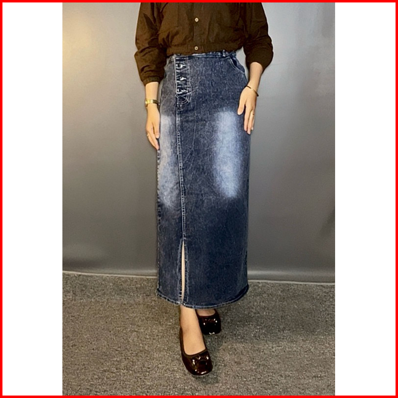 Rok Theana Jeans Span Panjang Karet Belakang Wanita Skirt Murah Terbaru Rok Jeans Denim - Indonesia
