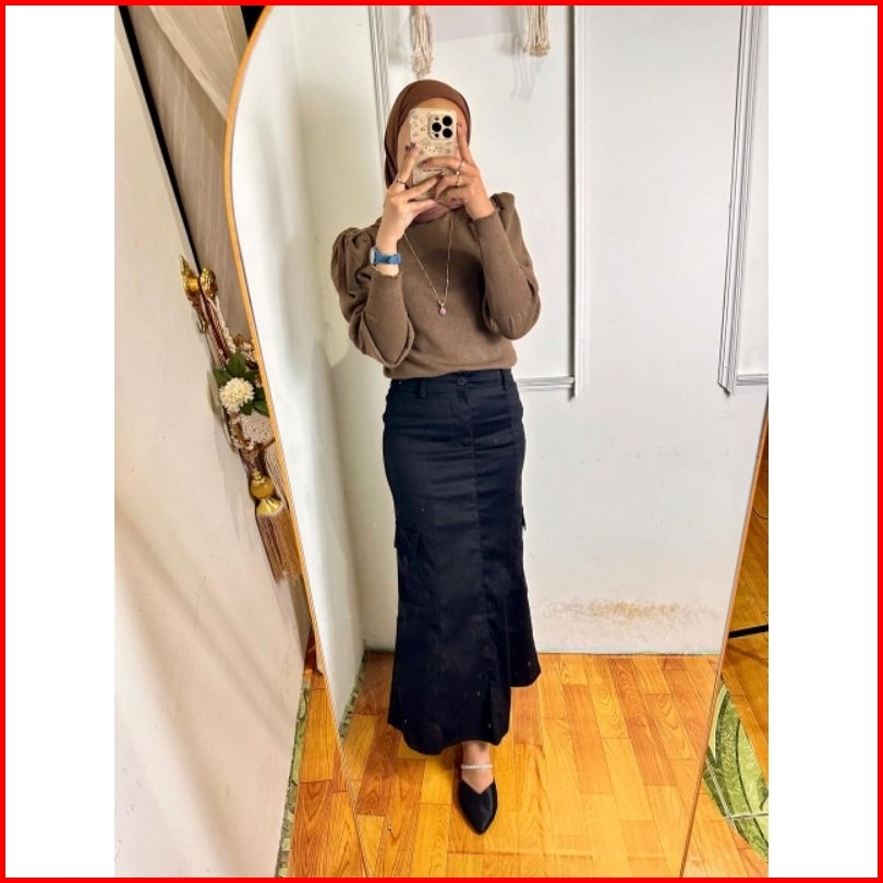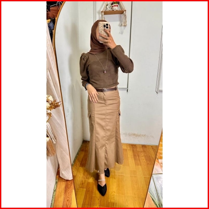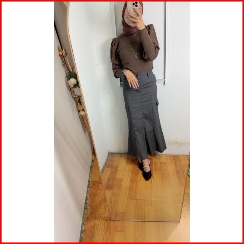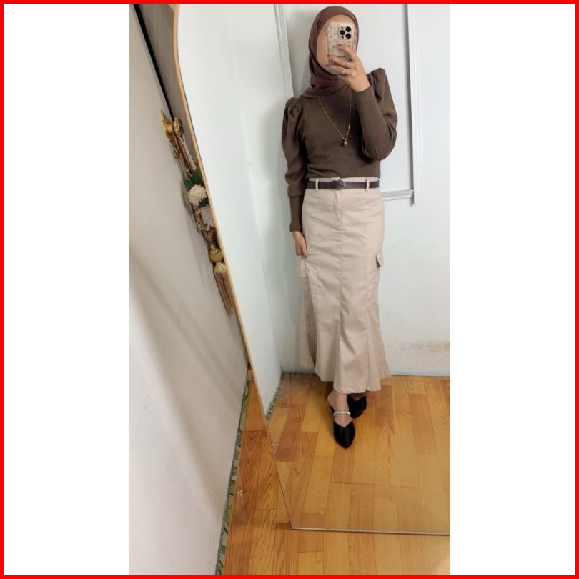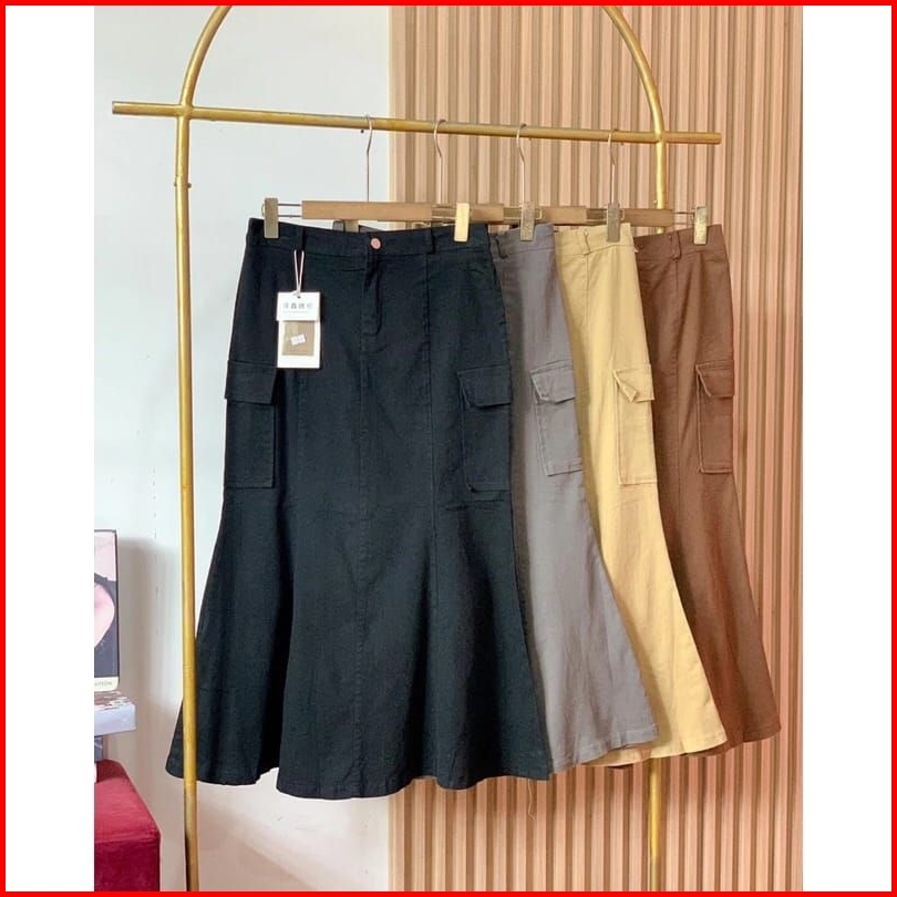 Rok Duyung Cargo Wanita Haigwaist Katun Twill Combad Premium Korean Style Kekinian