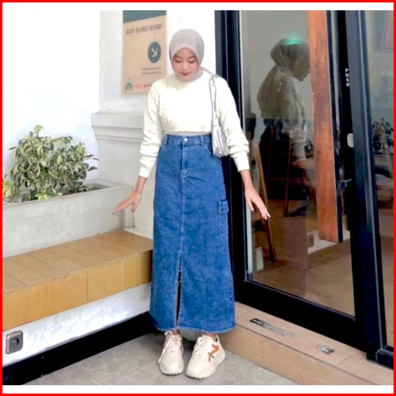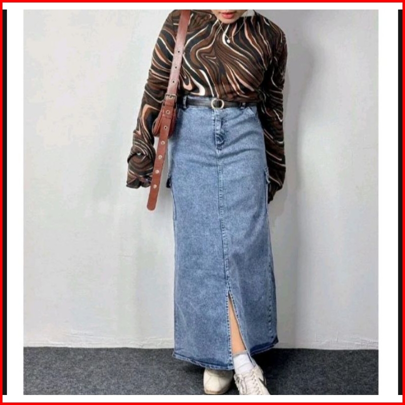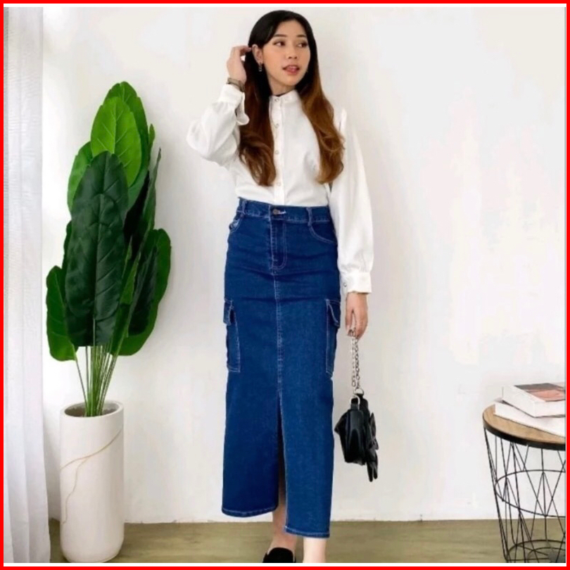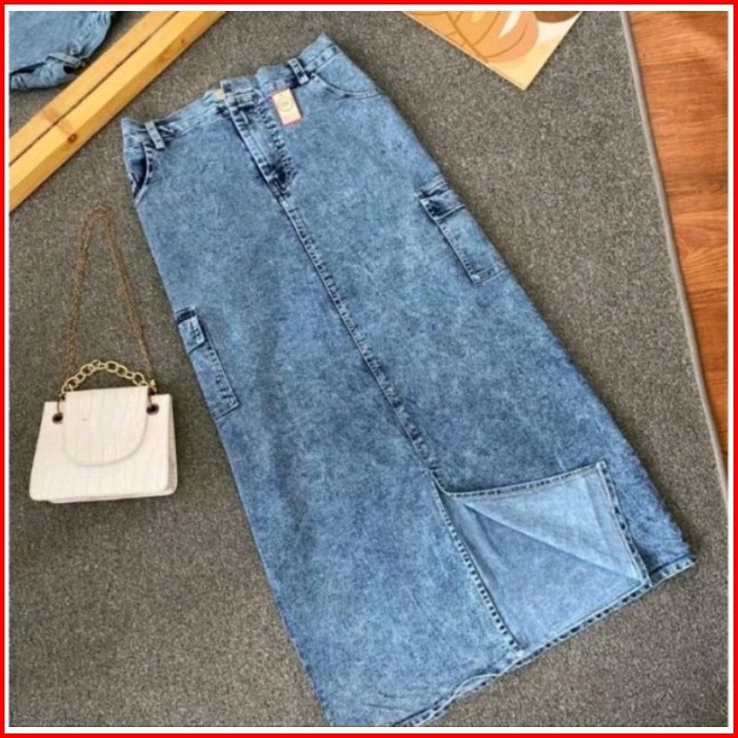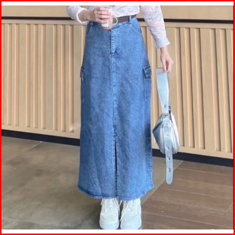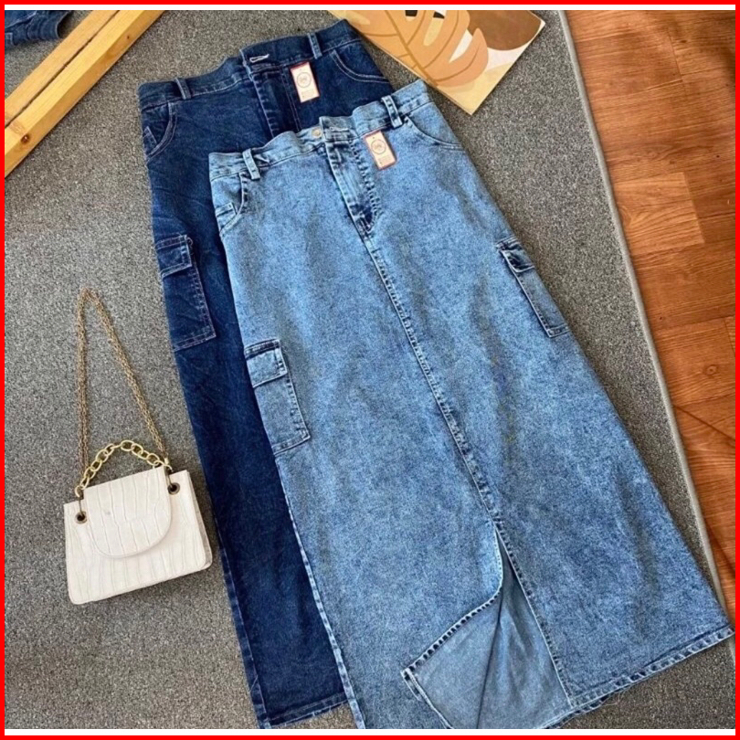 Rok Cargo Super Jumbo Terbaru Rok Cargo Wanita Sepan Panjang Rok Kargo Jeans Super Jumbo Kekinian