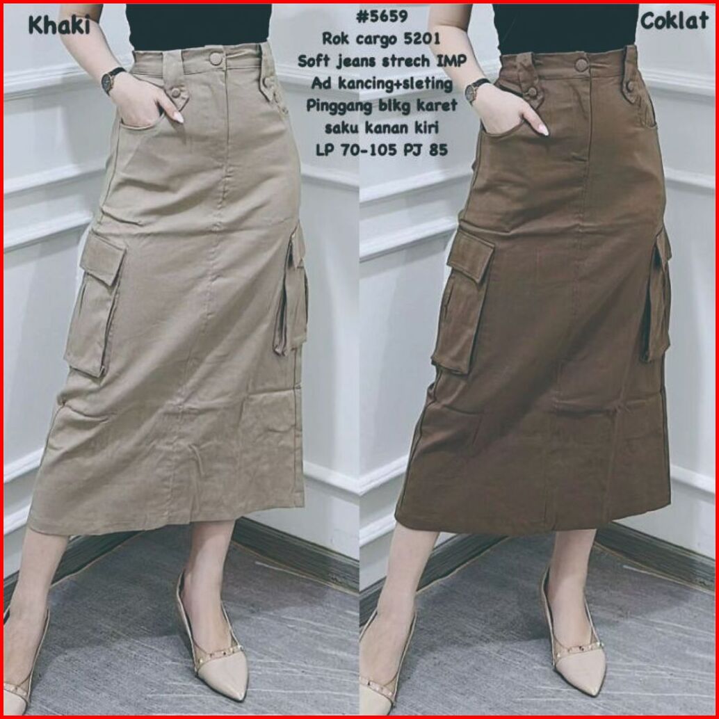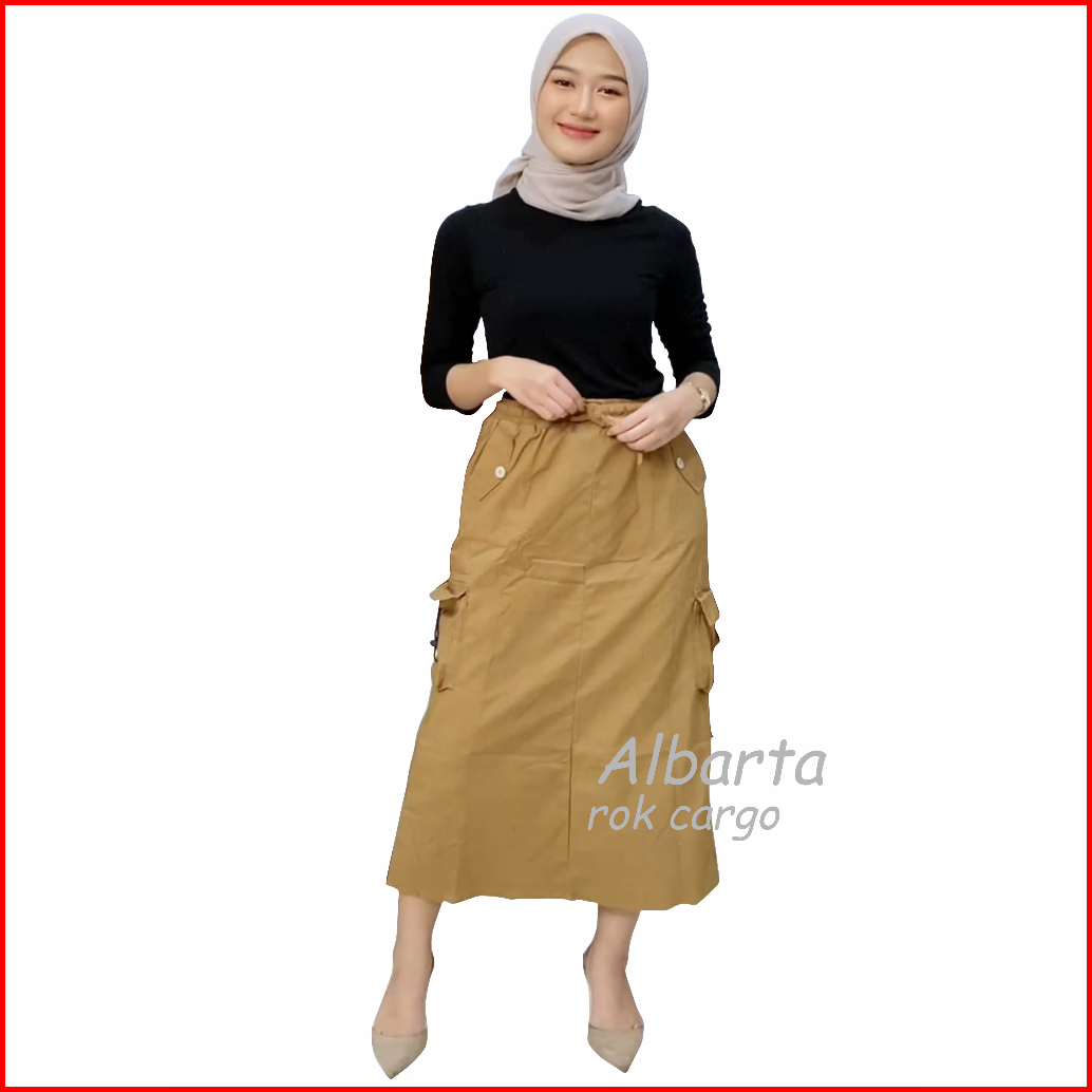 Rok Cargo Twill Combed Stretch Model Casual Rok Pinggang Karet Bahan Chinos