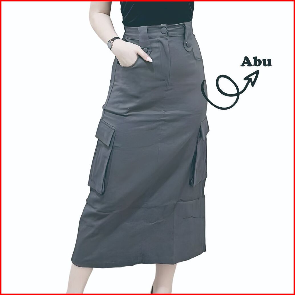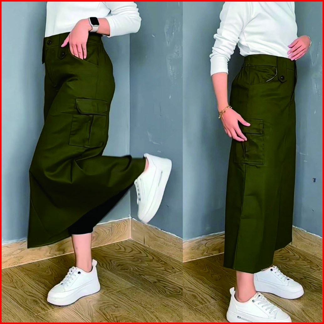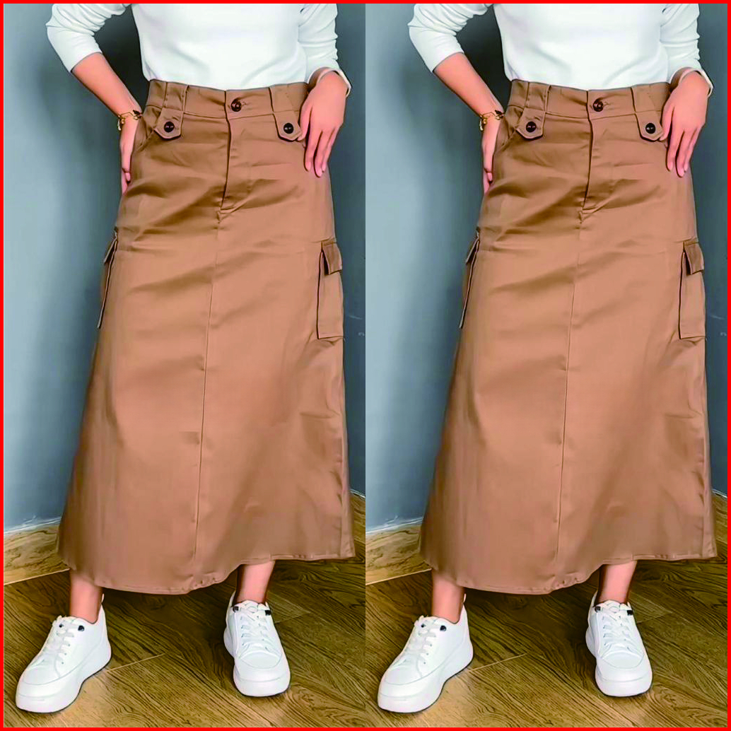 Rok Cargo Skirt Wanita 7 9 Katun Twill Ines