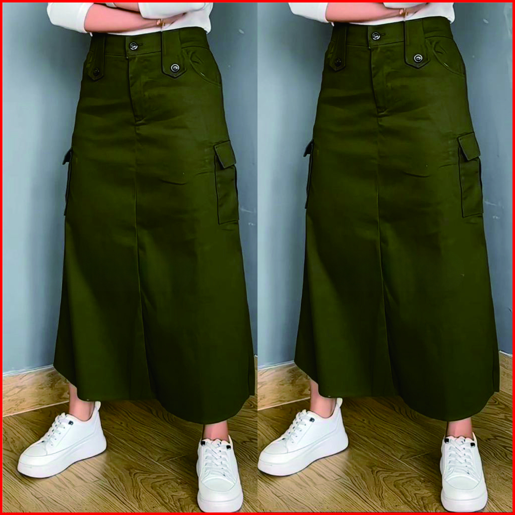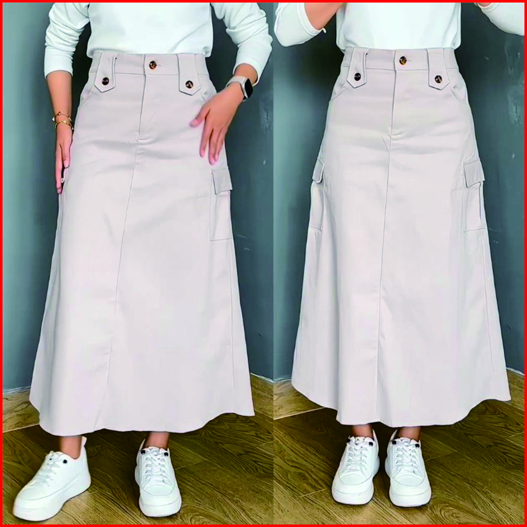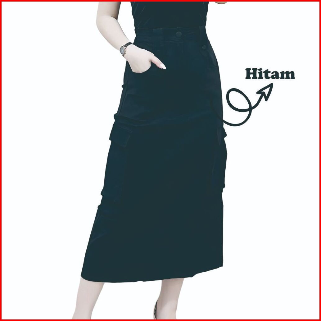 Rok Cargo Skirt Wanita 7 9 Katun Twill Ines