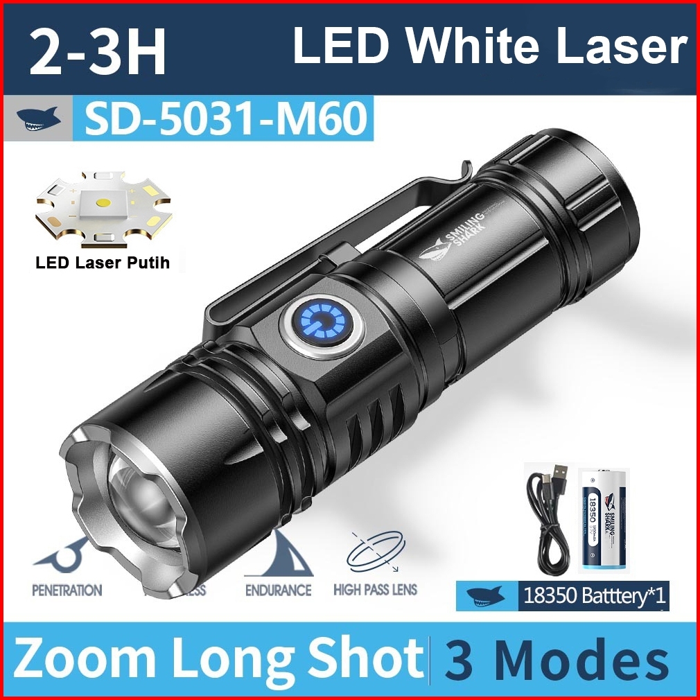 Senter Mini Smiling Shark Sd5031 Smilingshark Sd 5031 Magnet Clip Type-c Rechargeable Waterproof